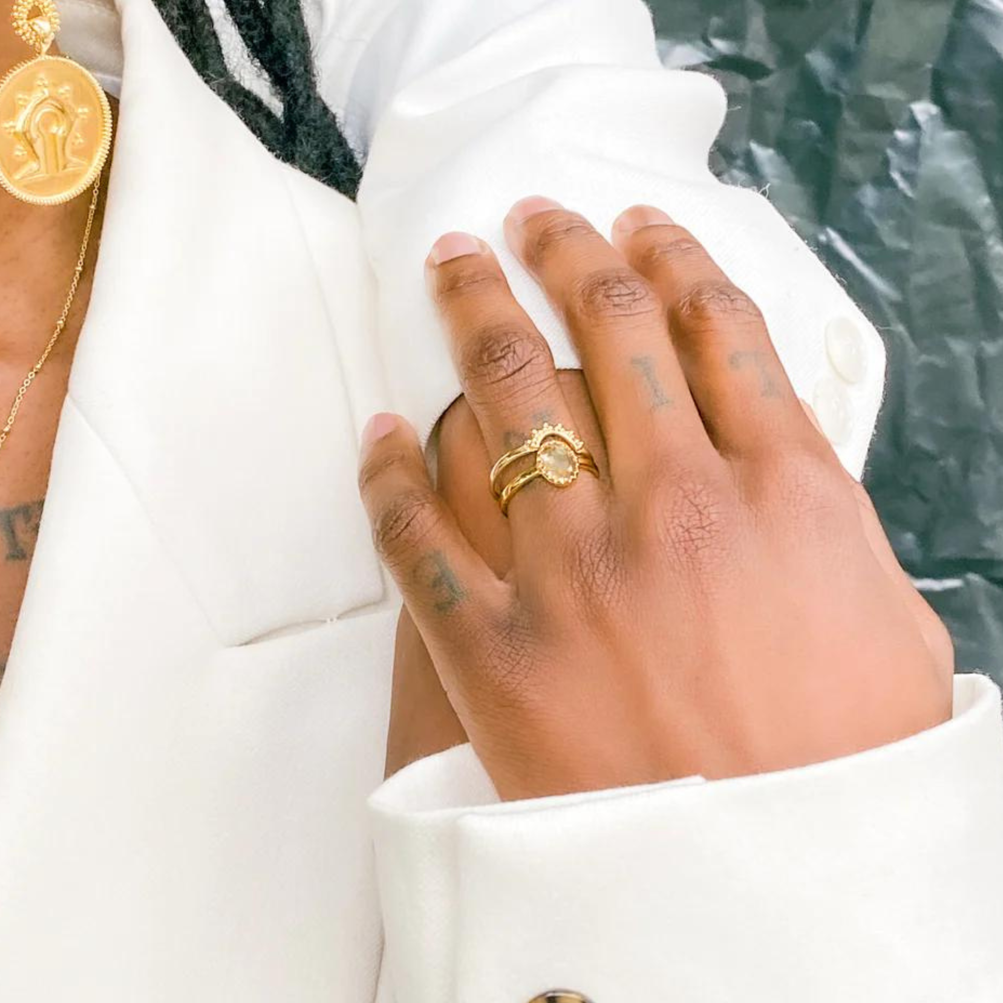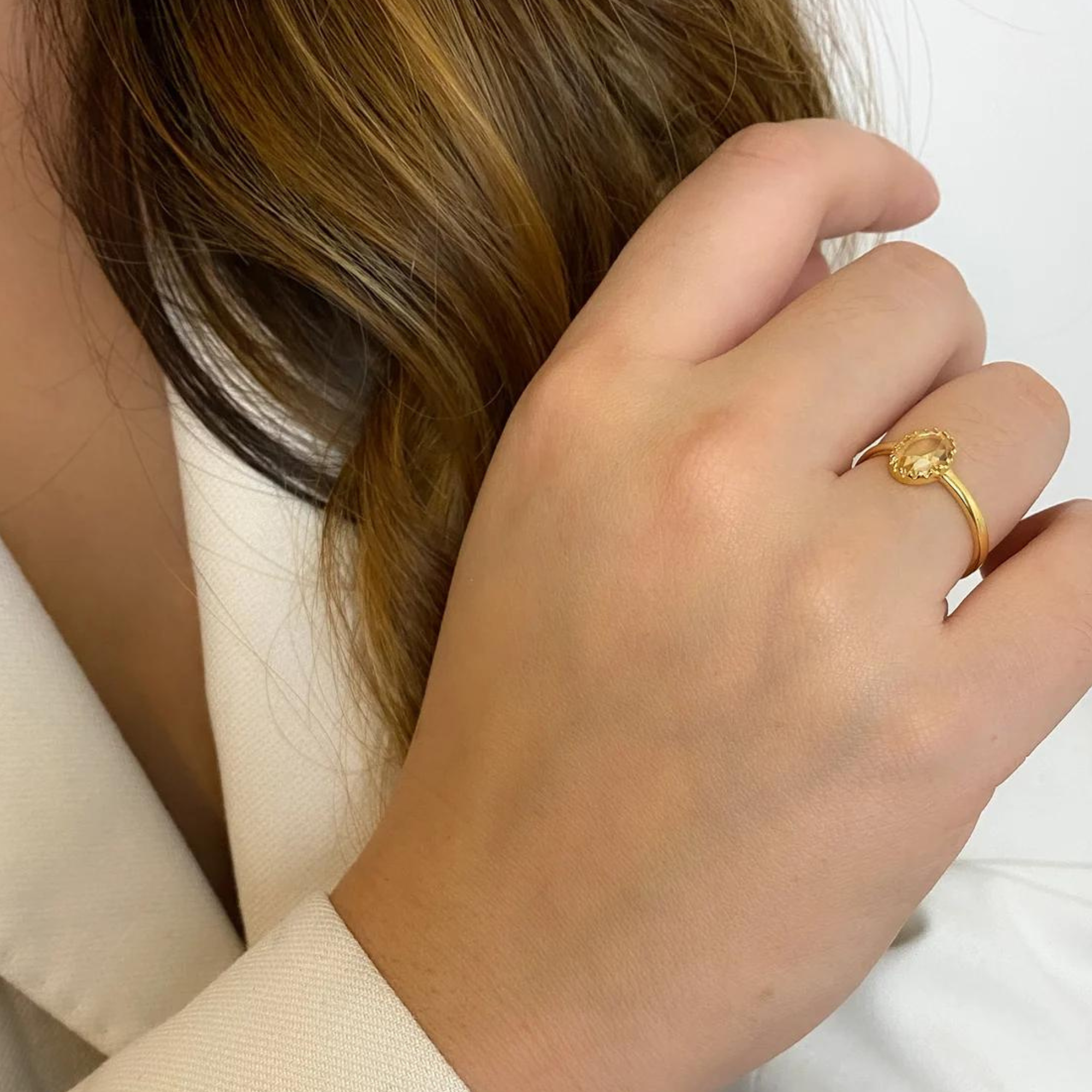 The Citrine Royal Ray of Light is a regal ring, set with a captivating oval faceted Citrine stone.The Ray of Light is an ode to the sun, a token for strength, rebirth and power. The triangle-setting of the gemstone is inspired by the ‘Paes’, typical bridal make-up from Central Java, Indonesia.