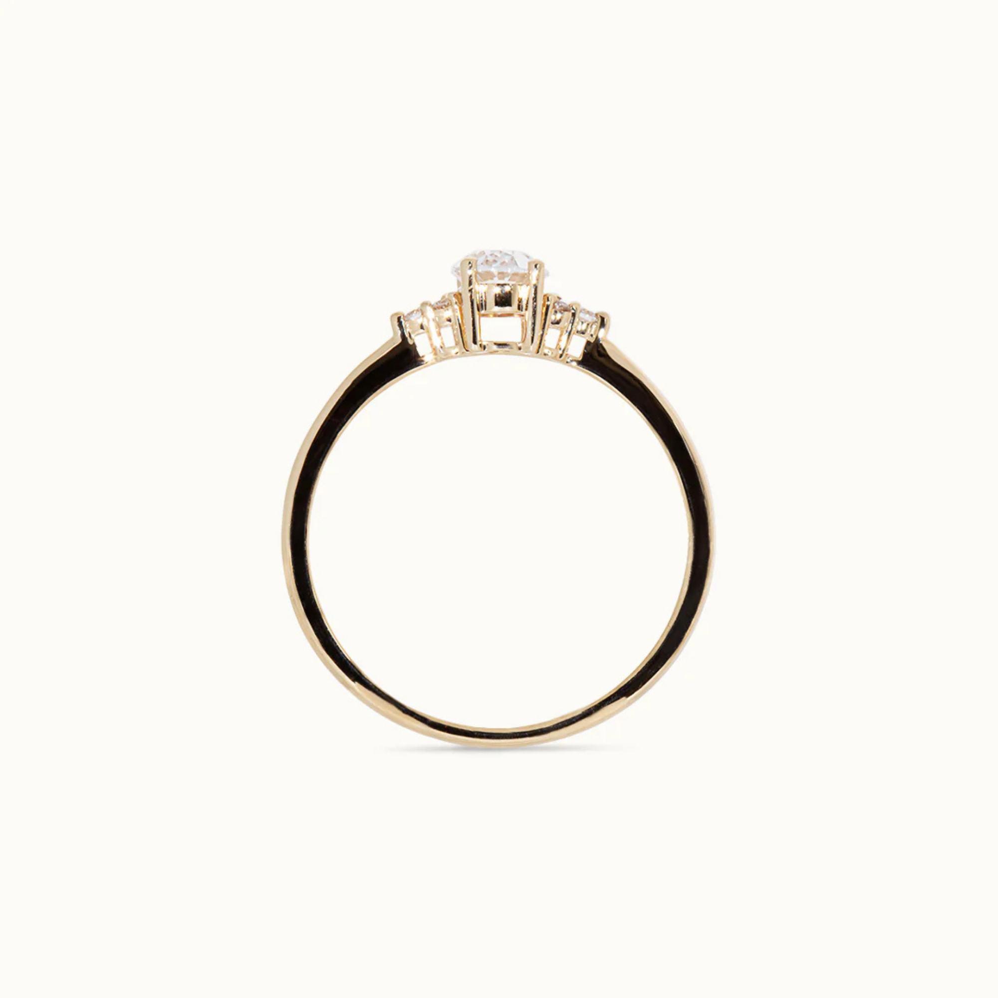 A central oval diamond, flanked by three stones on each side. The Joanne ring radiates balance and symmetry. A design full of romance and harmony. For those who choose with heart and an eye for detail.