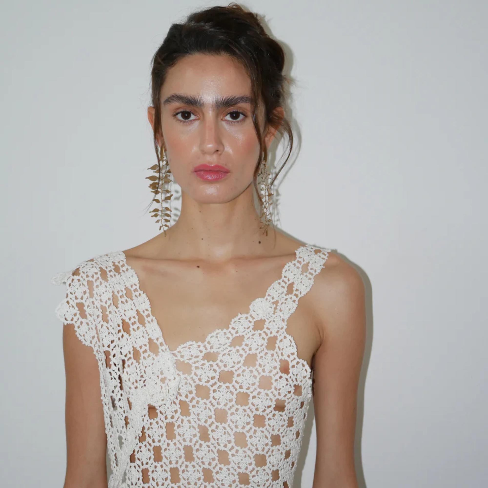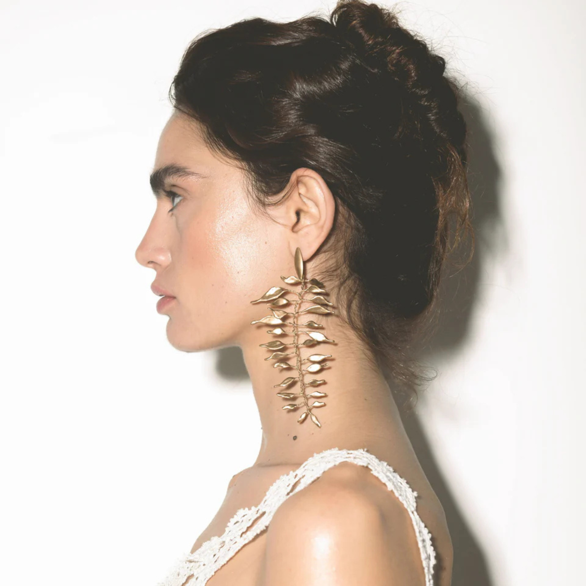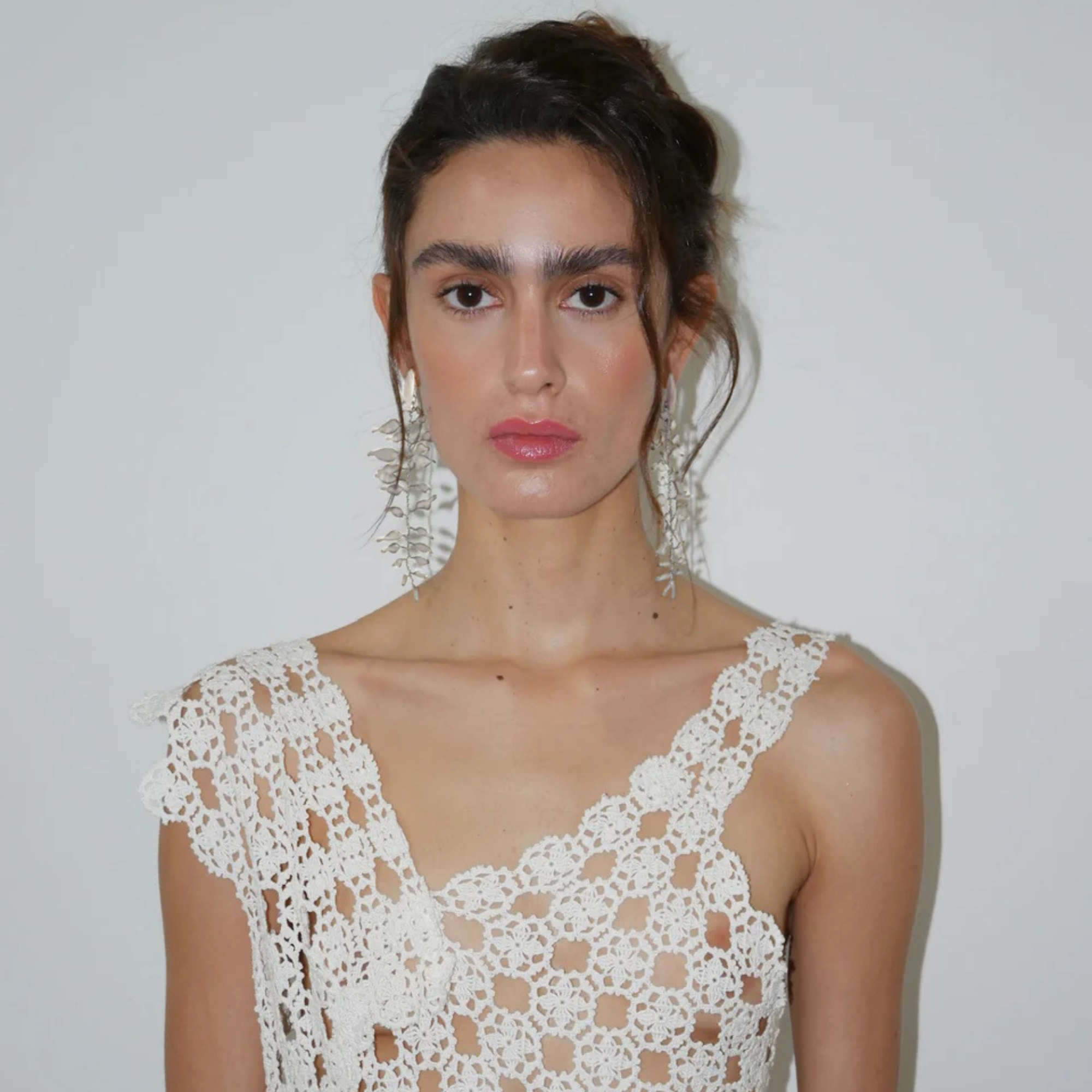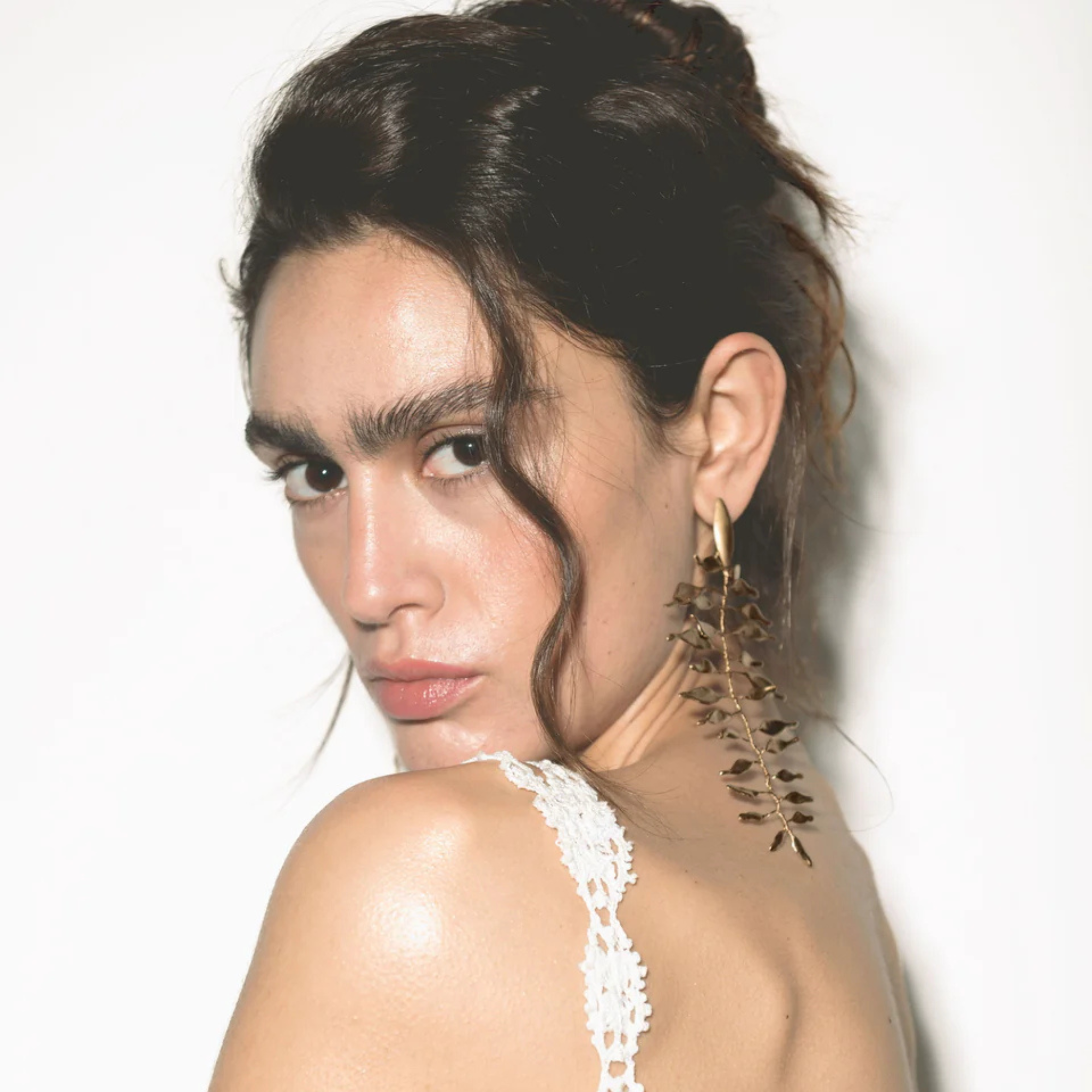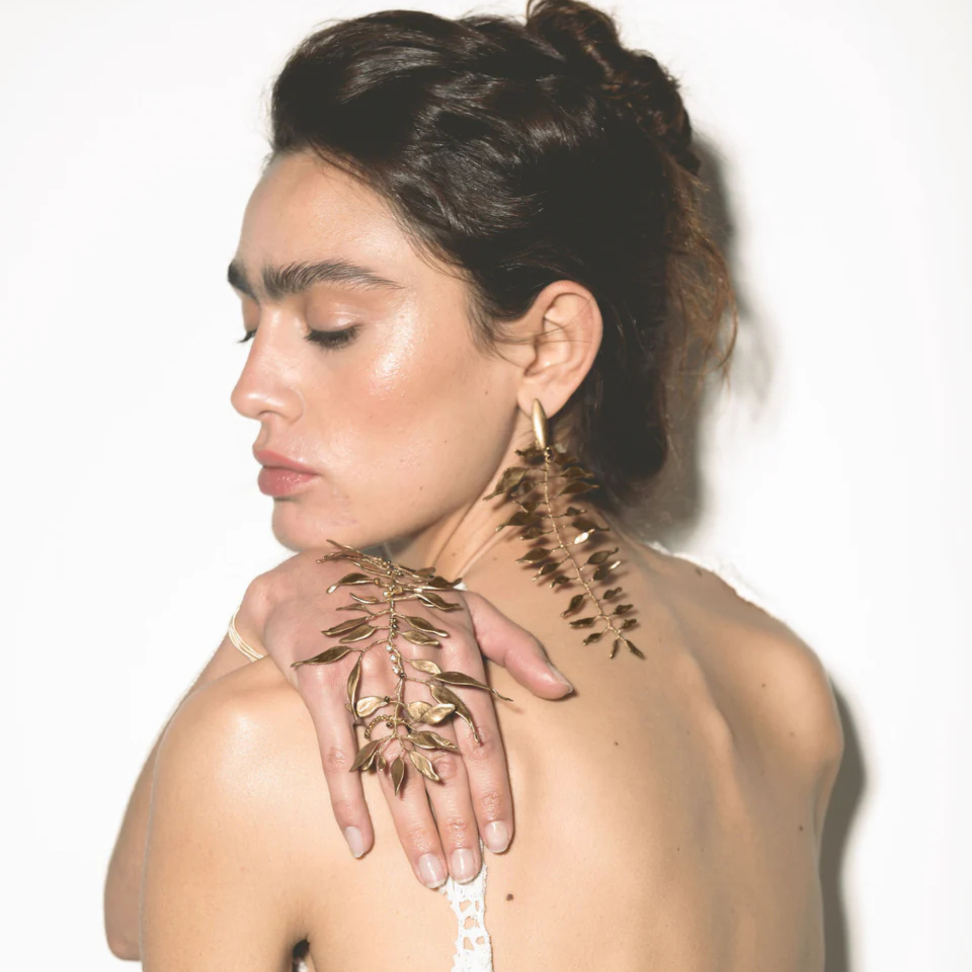 Materials: Alpaca thread in silver-plated or gold-plated brass and copper. Infinite layers created through a meticulous process of overlaying varnishes. Thread closure composed of 67% cotton and 33% rayon. Details with carefully selected Czech crystals, rhinestones, and beads. Sold as a pair (2 pieces)