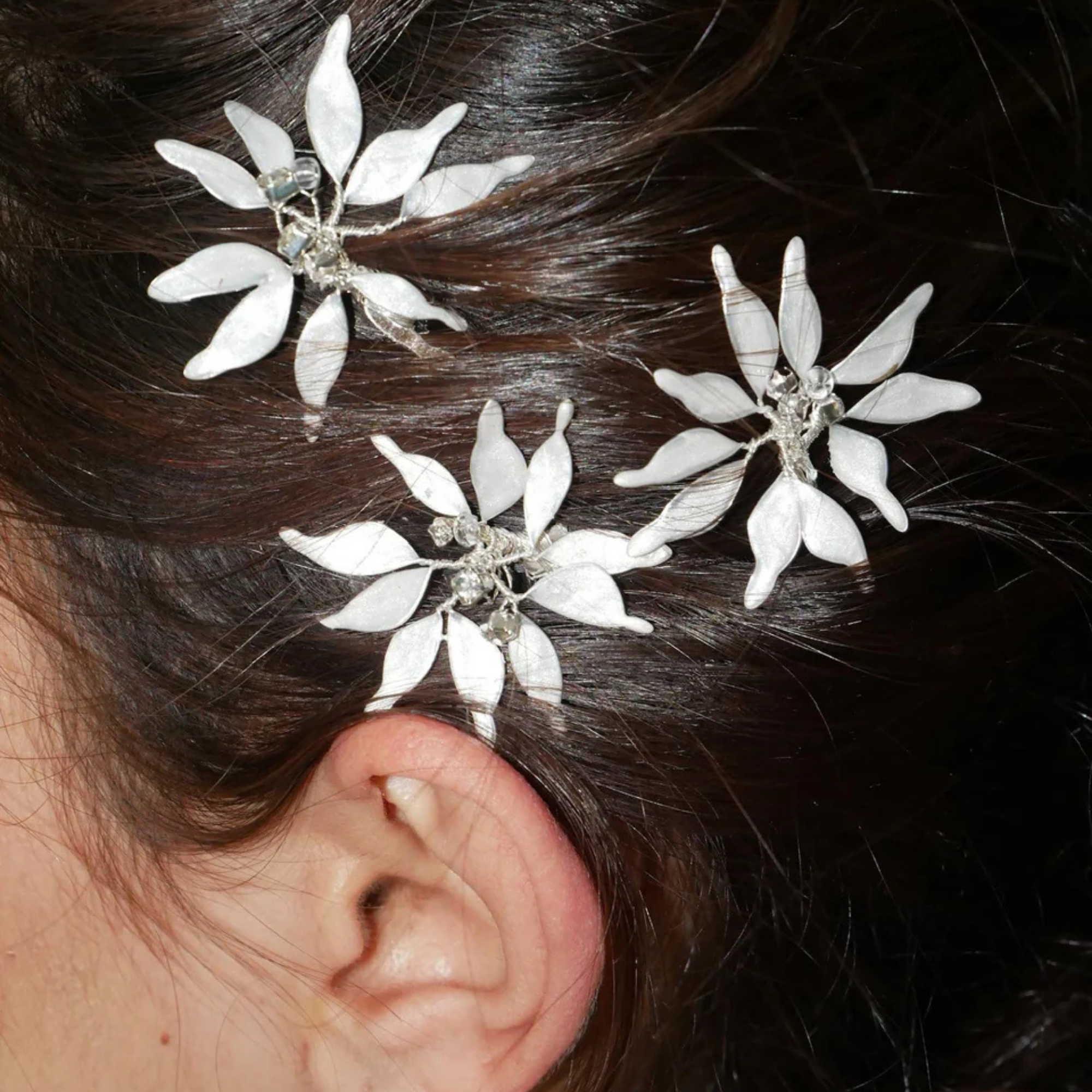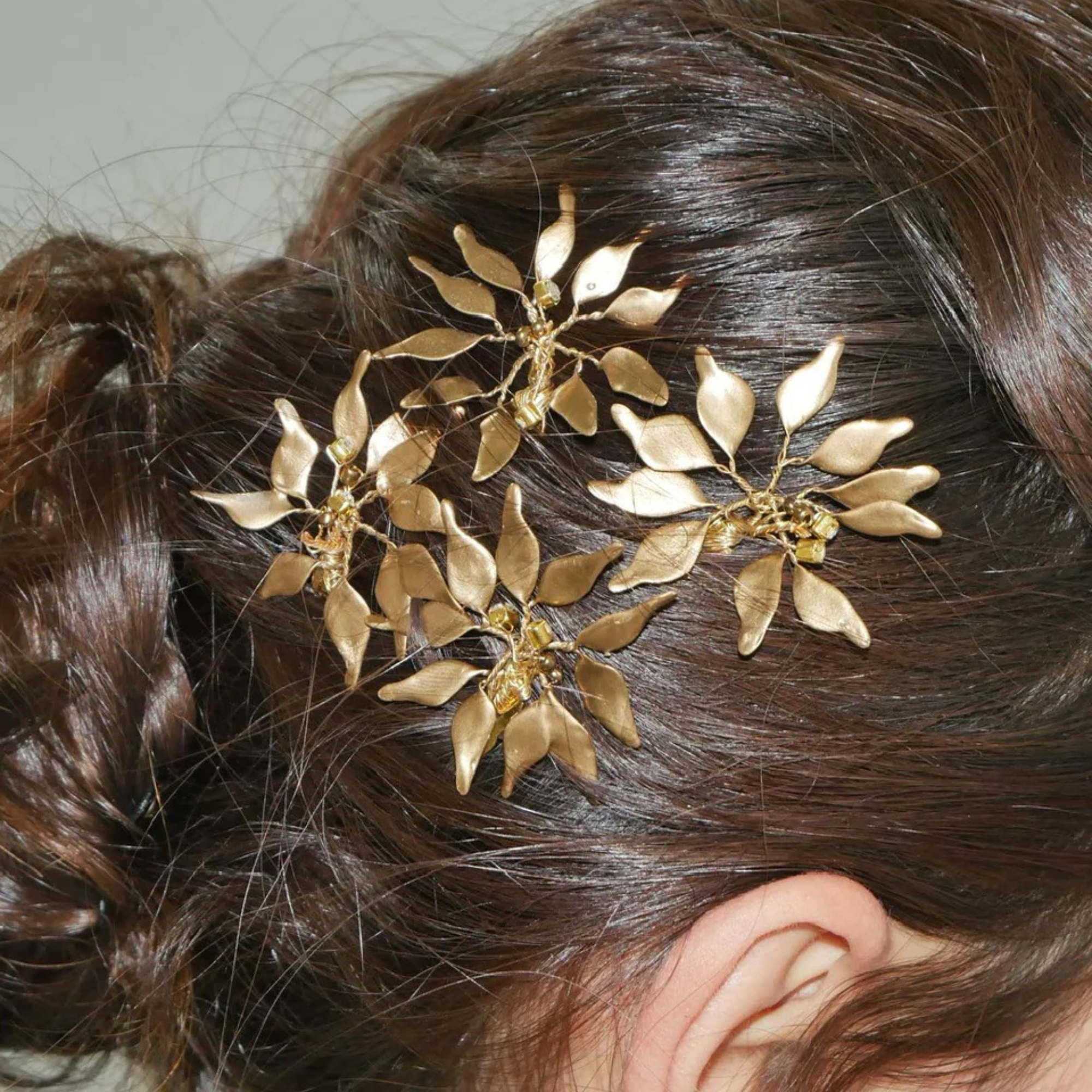 Materials: Alpaca thread in silver-plated or gold-plated brass and copper. Infinite layers created through a meticulous process of overlaying varnishes. Thread closure composed of 67% cotton and 33% rayon. Details with carefully selected Czech crystals, rhinestones, and beads. Sold as a pair (2 pieces)