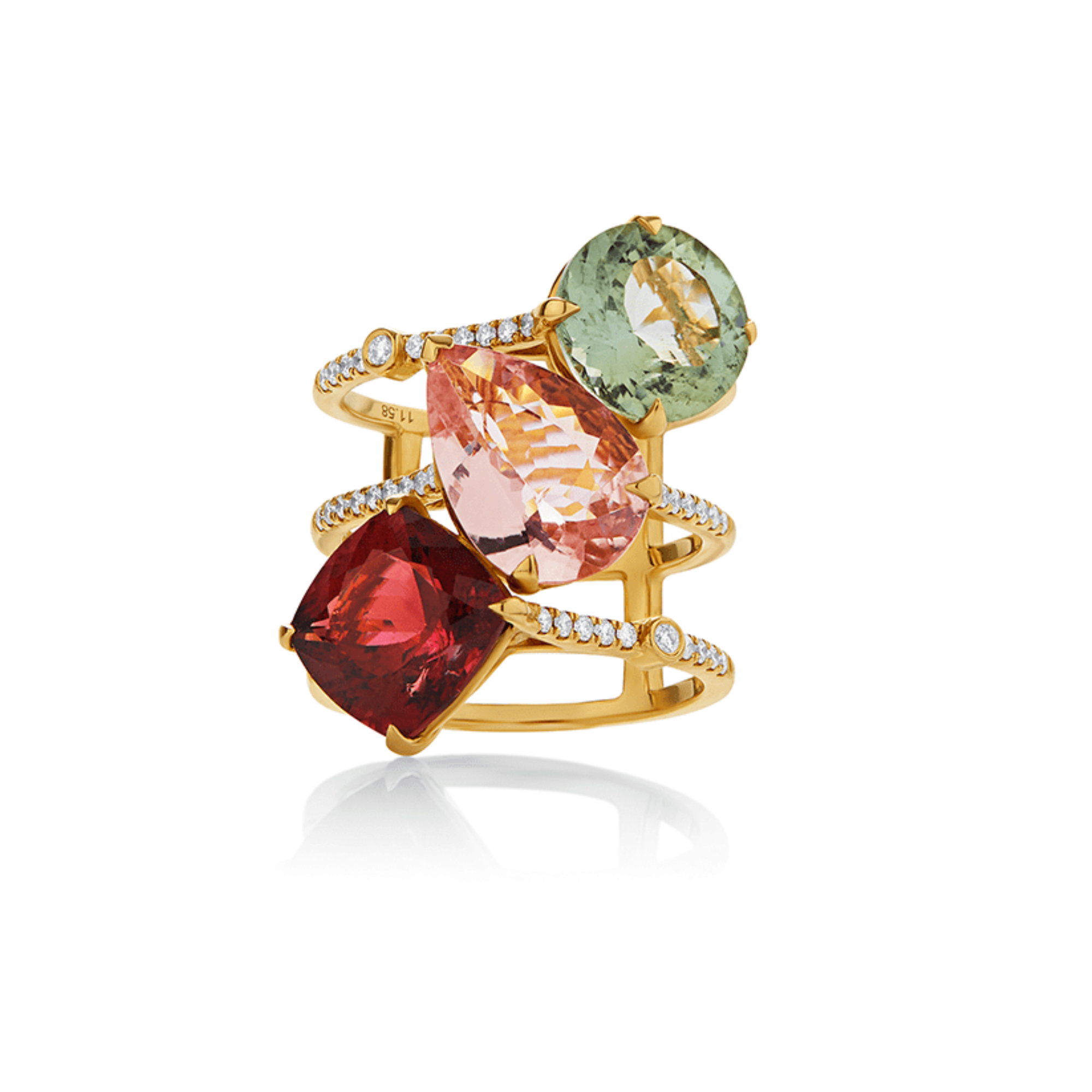Anillo Turmalinas I - Anillo de oro amarillo 18k con turmalinas y diamantes