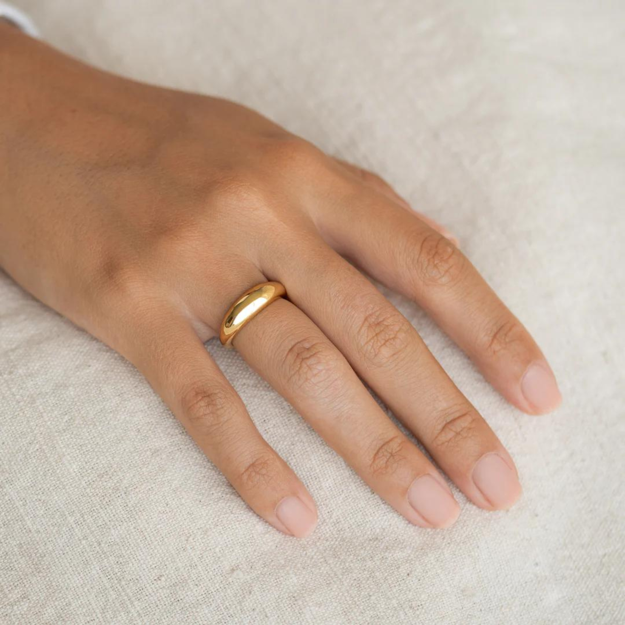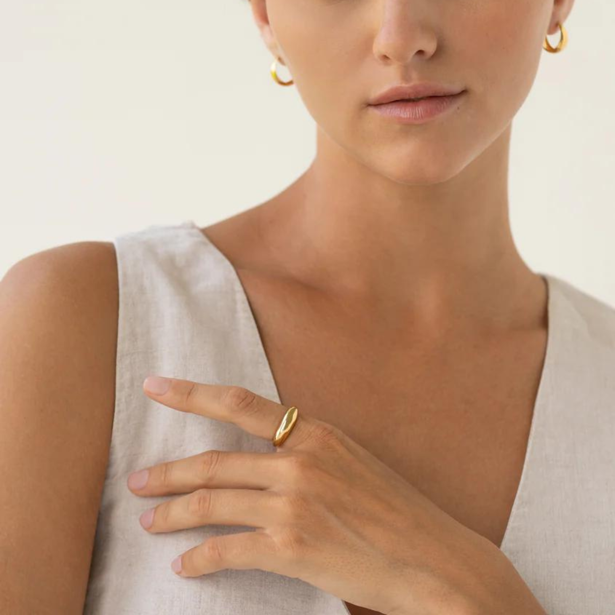 A statement ring with a puffy tapered design, crafted in gold vermeil.