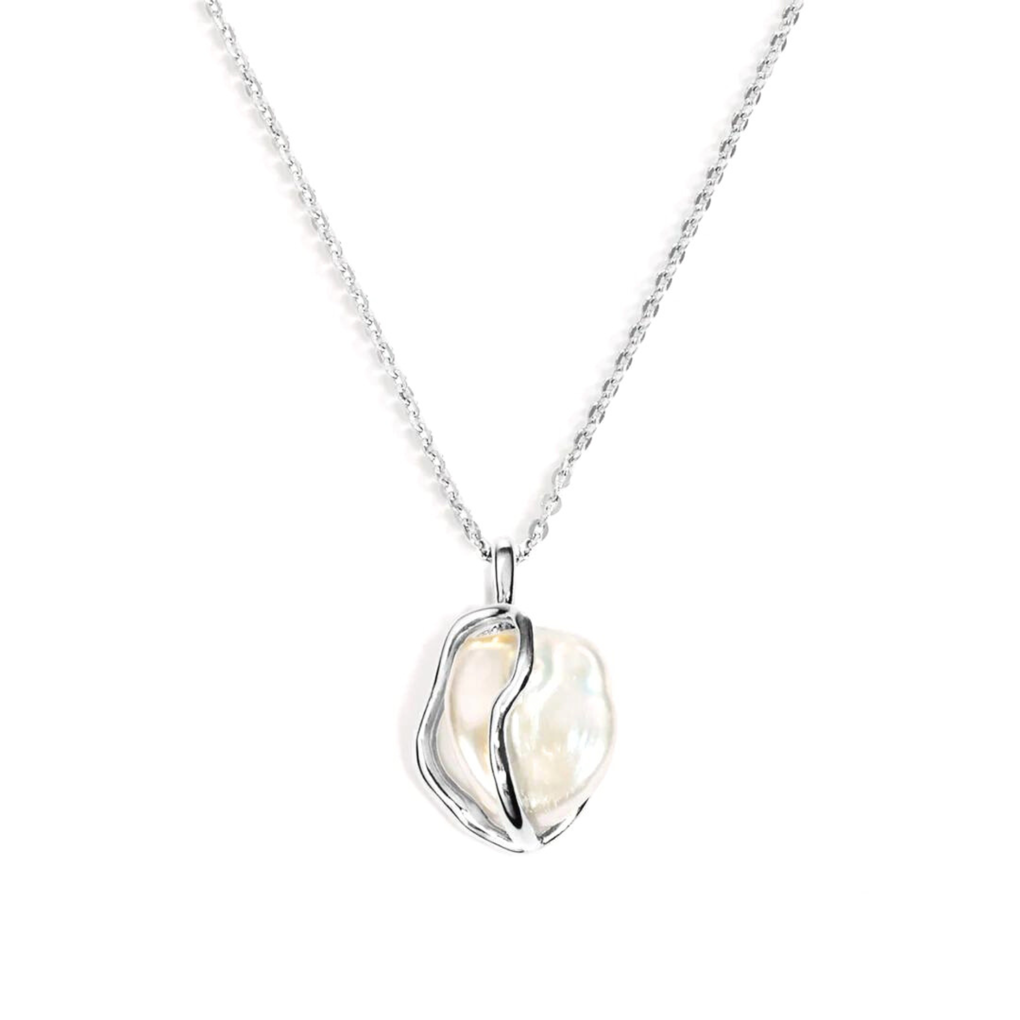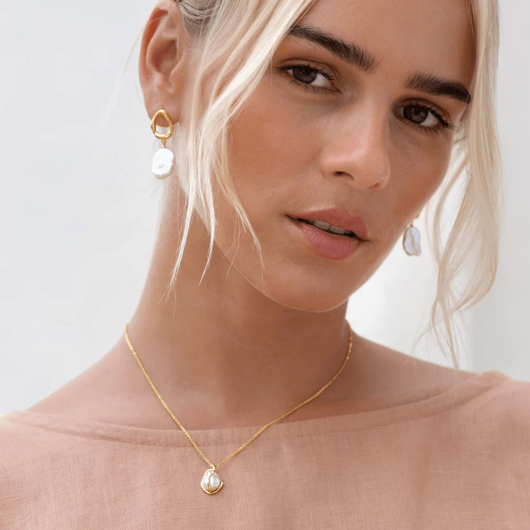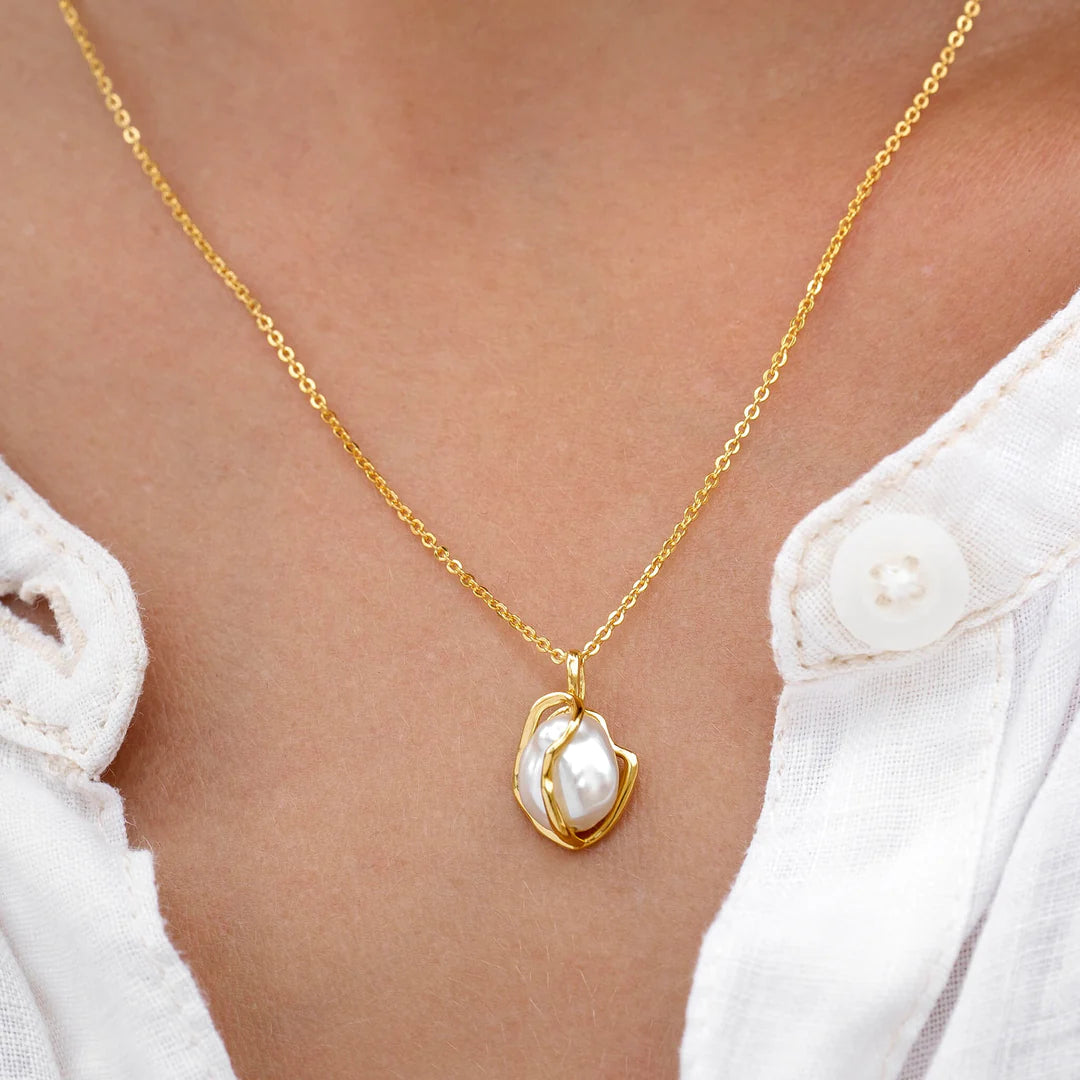 The Keshi Pearl Necklace (Marit) features a keshi pearl nested in a unique gold organic setting.
