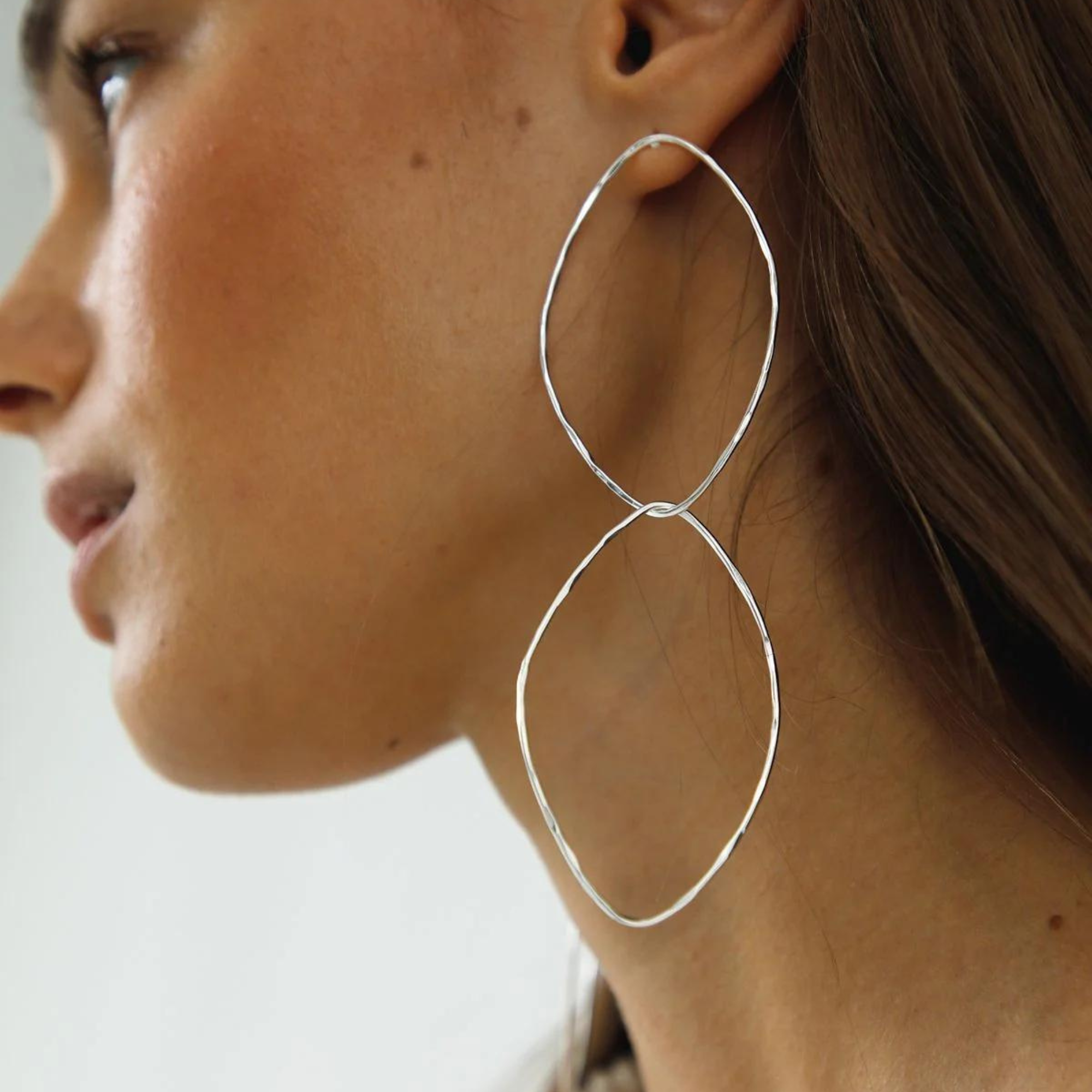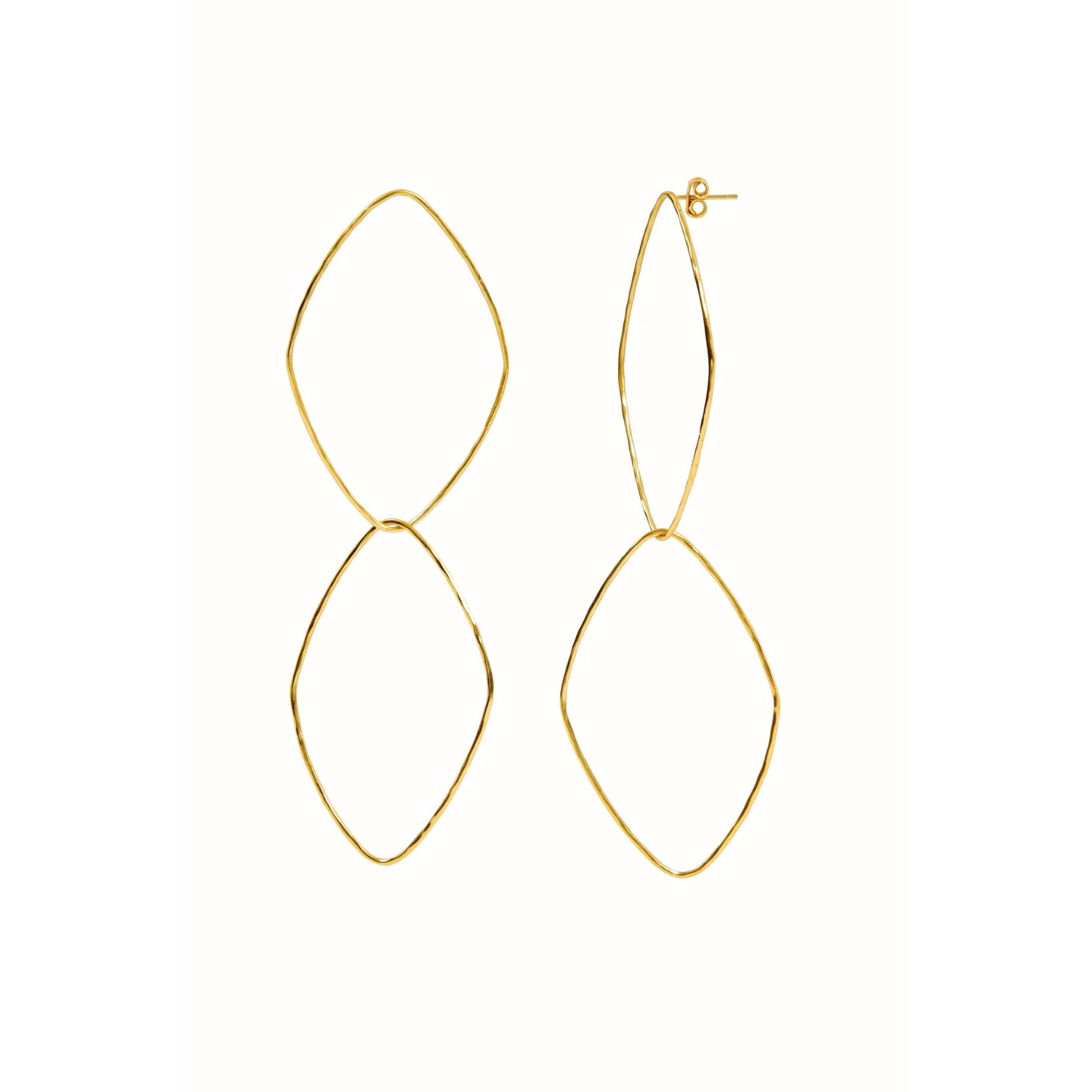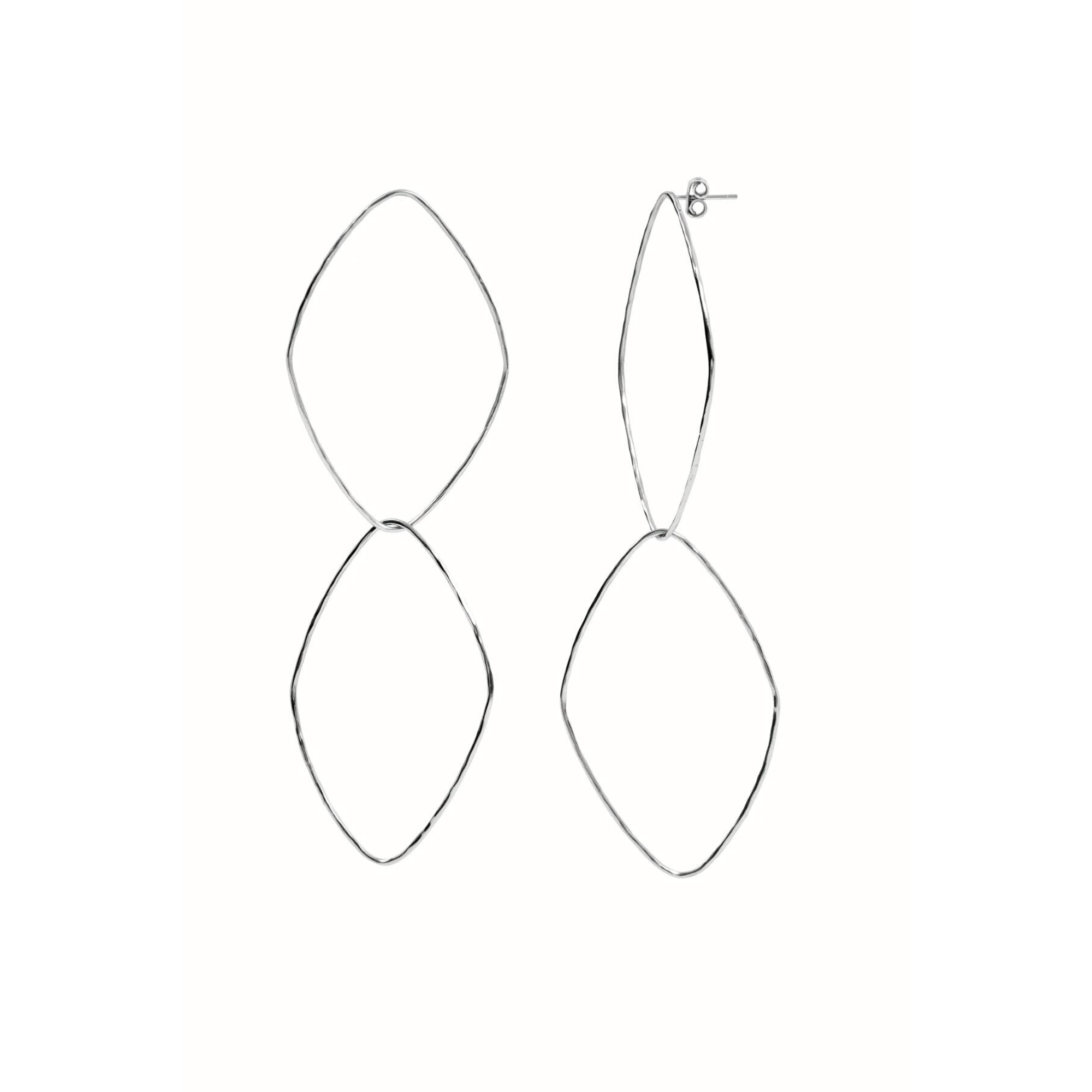 Long earring made up of two very fine rhombus-shaped geometric pieces.