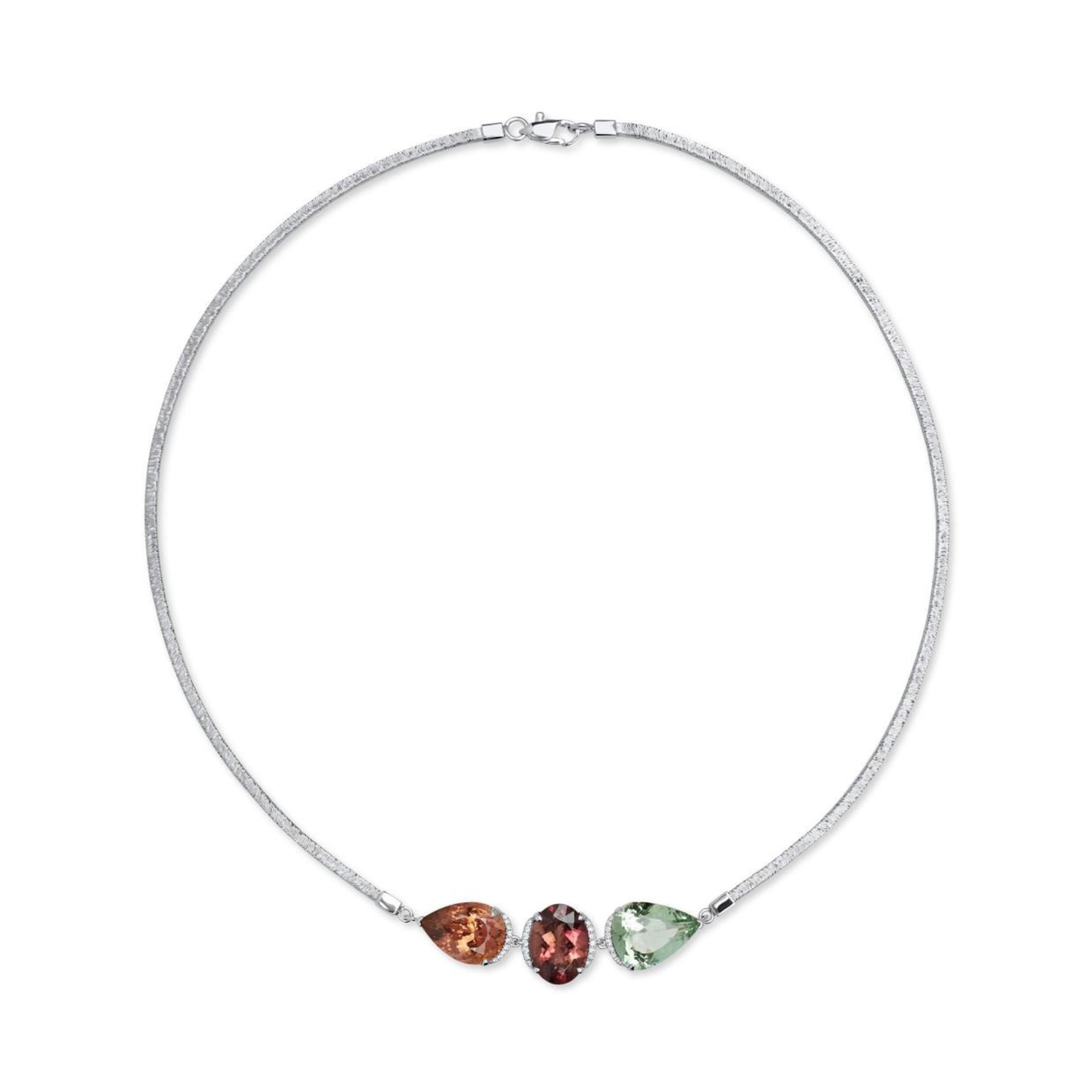 Collar Turmalina Tramado - Collar de oro blanco 18k con turmalinas y diamantes