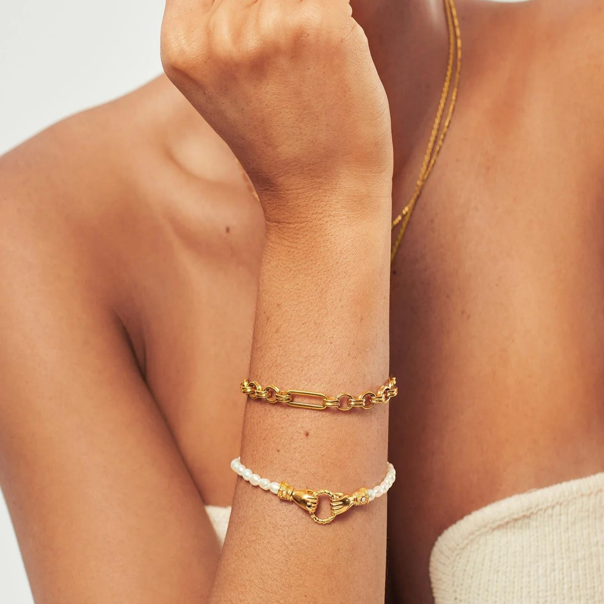 An iconic everyday chain. Make an impact with this bold chunky bracelet with interlocking links – featuring a unique invisible fastening. This piece features a hidden clasp for a seamless finish. Make it personal with detachable clip-on pendants.