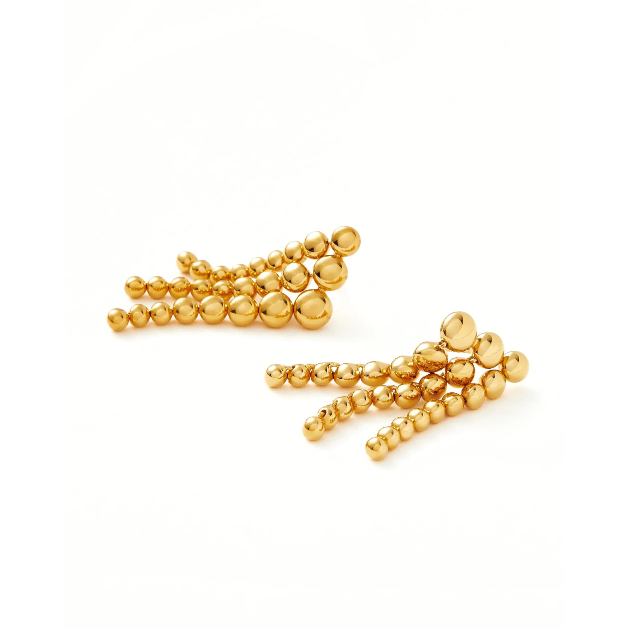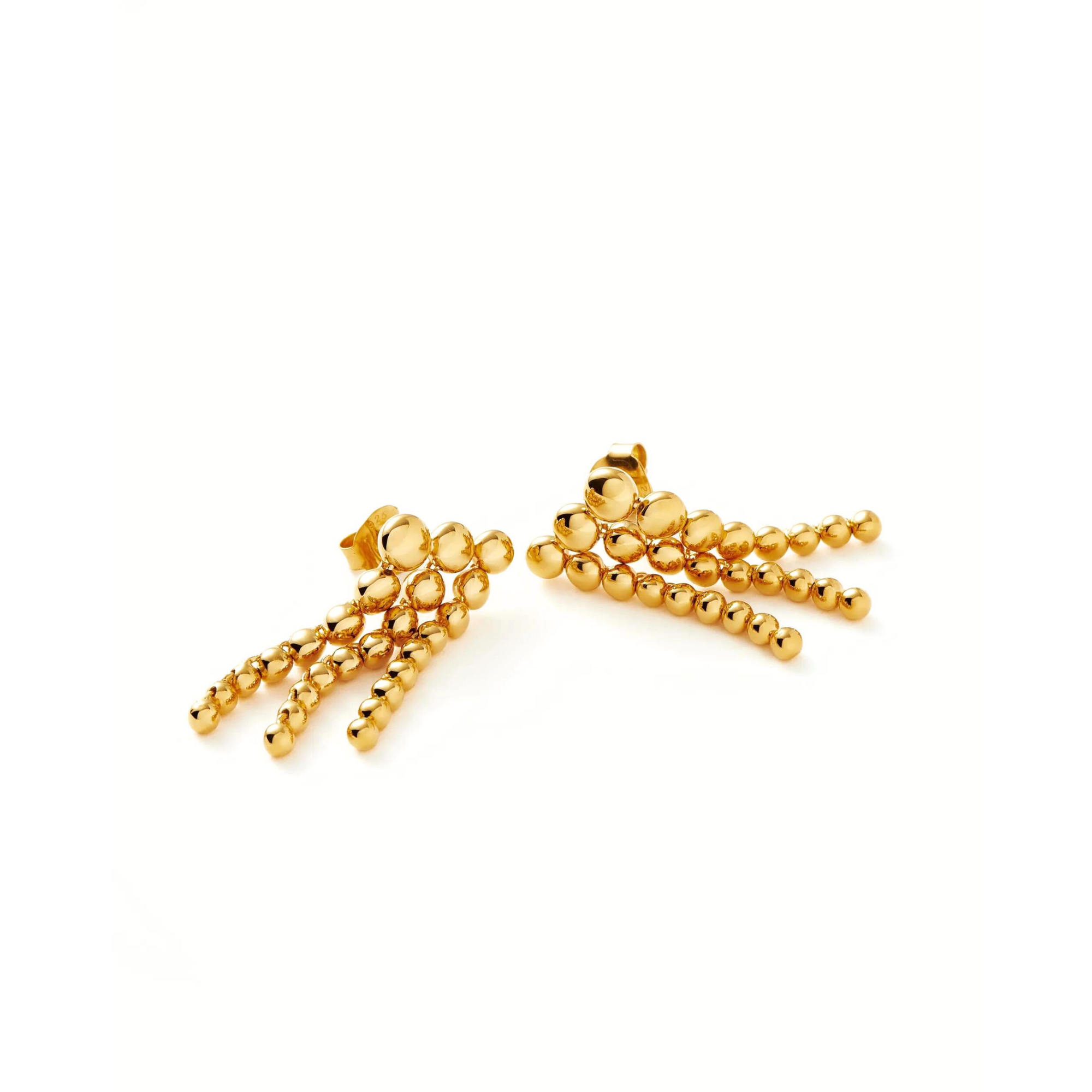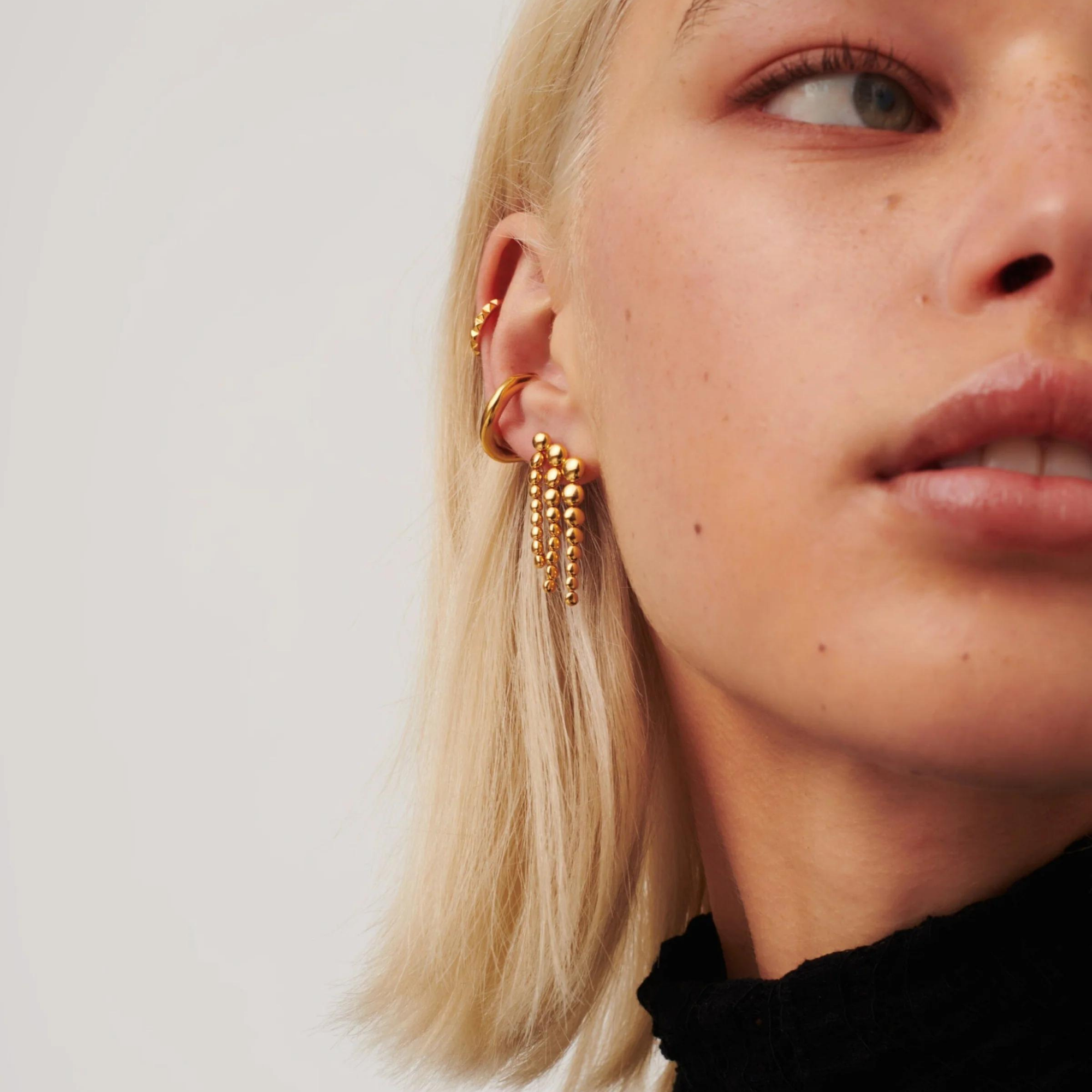 These statement waterfall-style studs feature rounded beads that graduate in size. Let them take centre stage as they move and flow in your ear stack, or team with pavé studs.