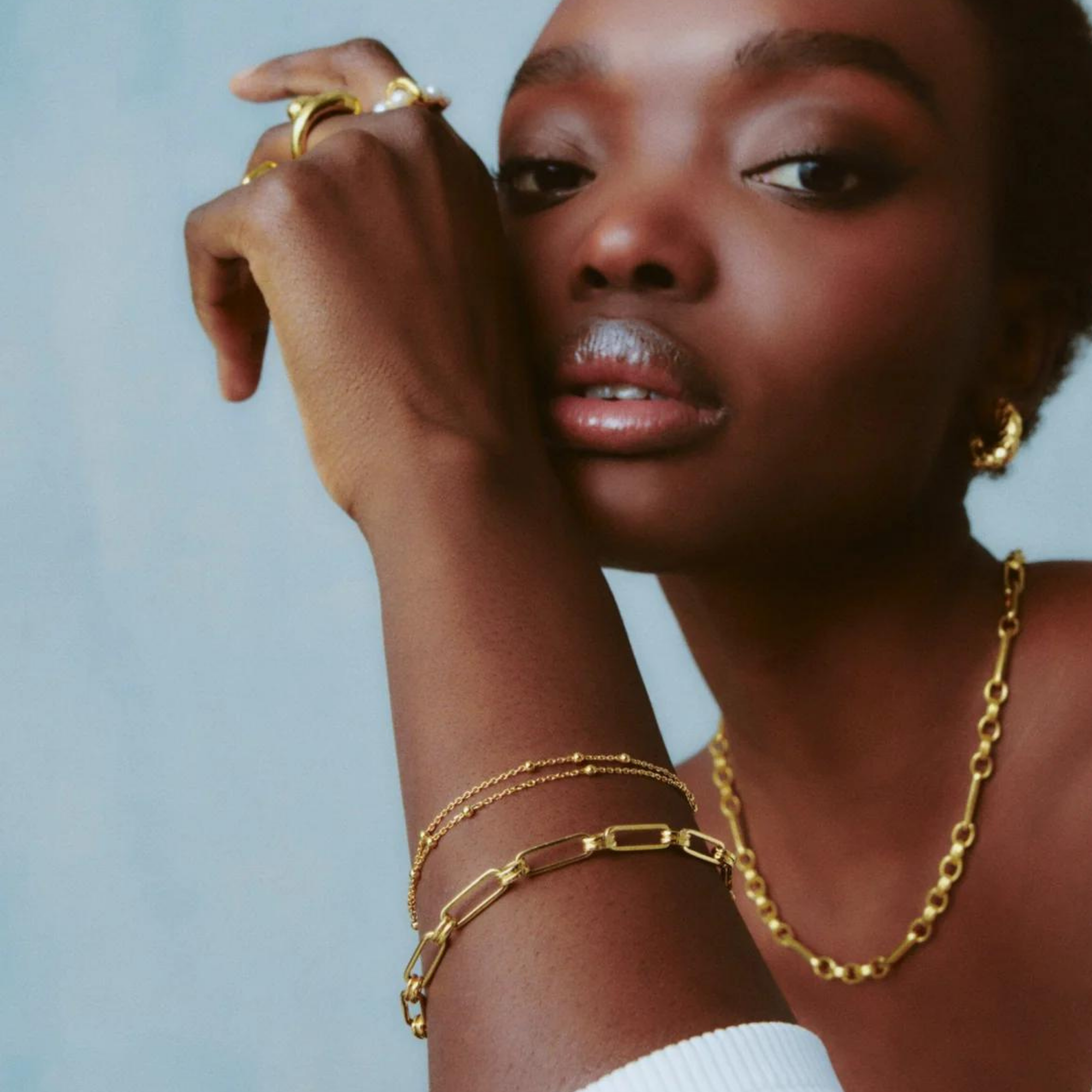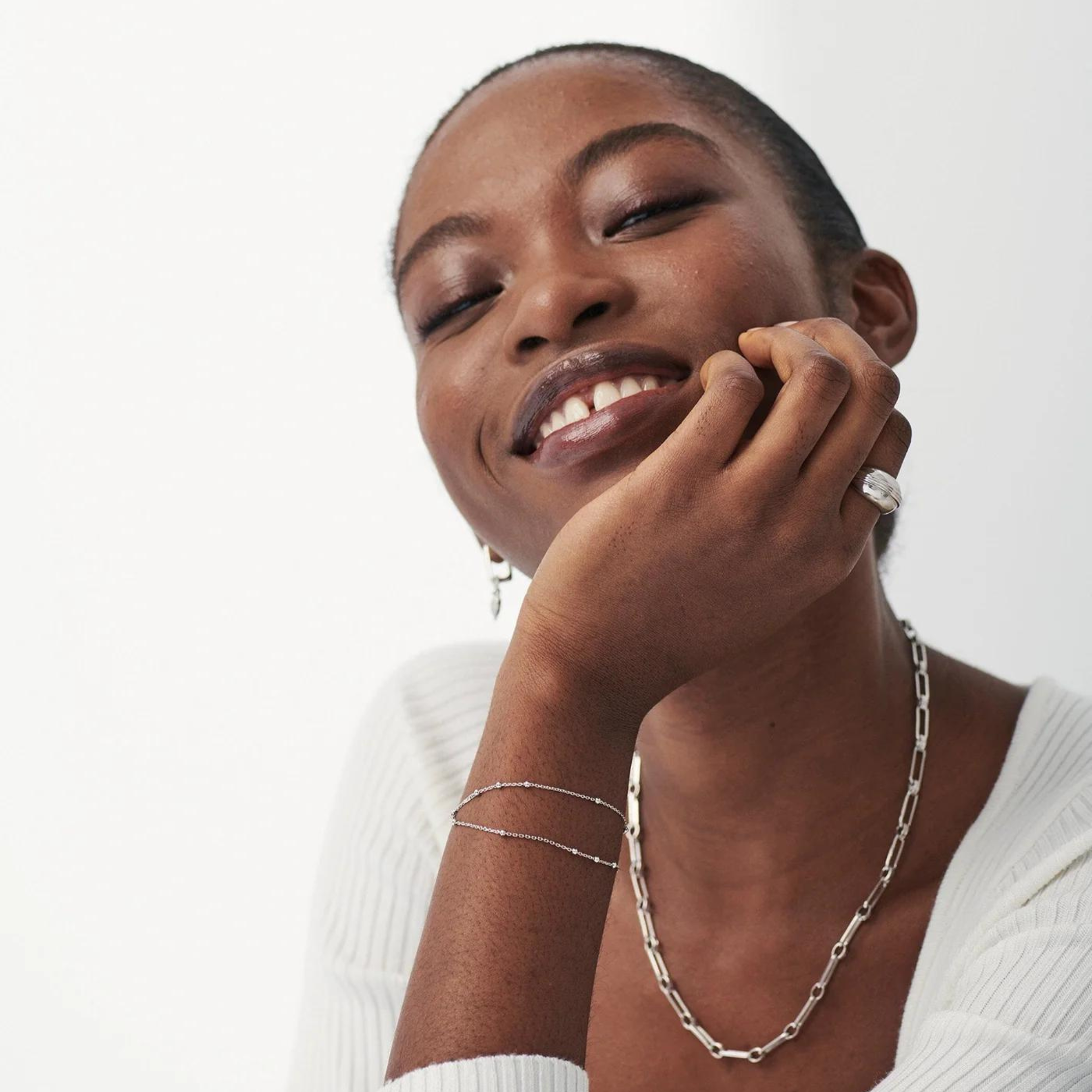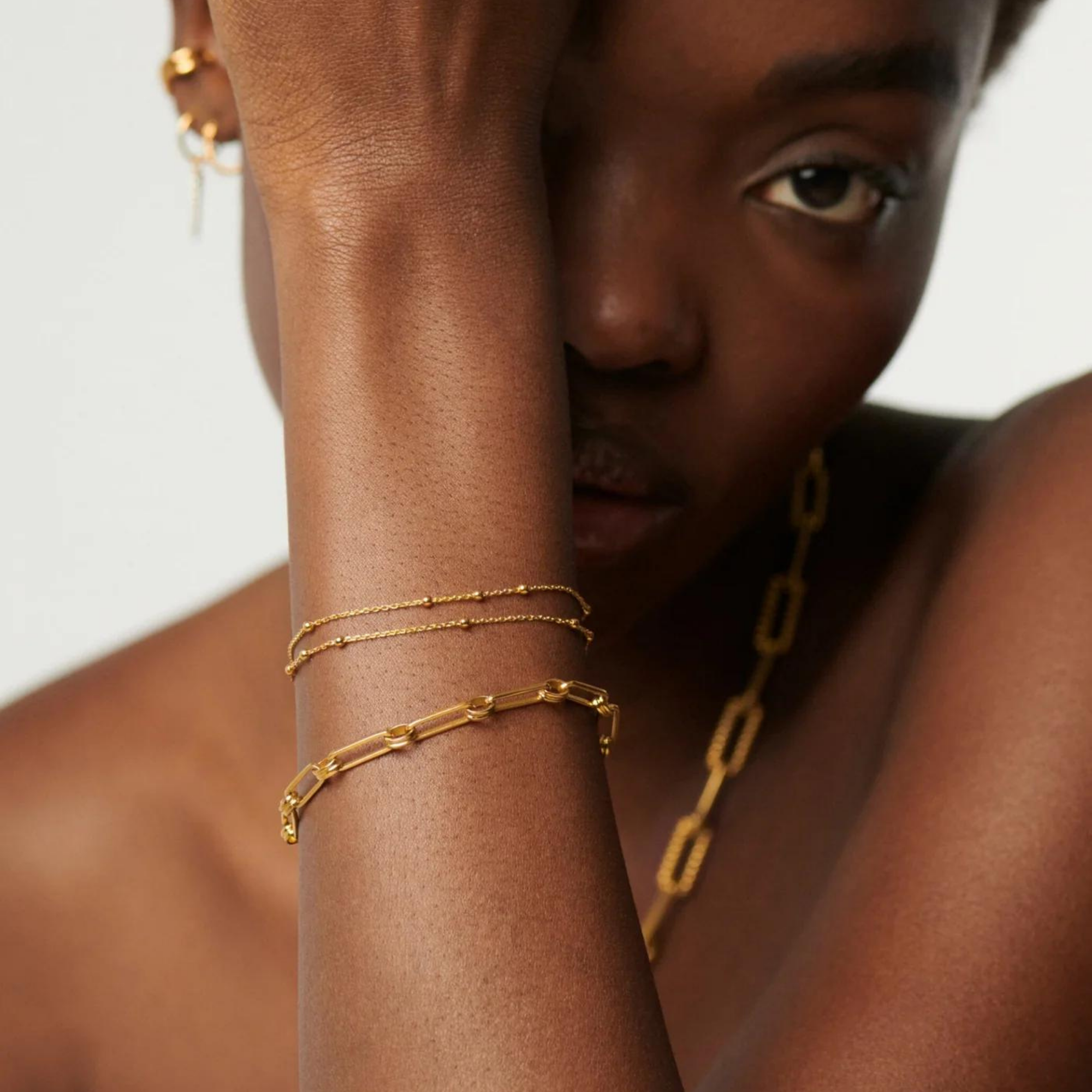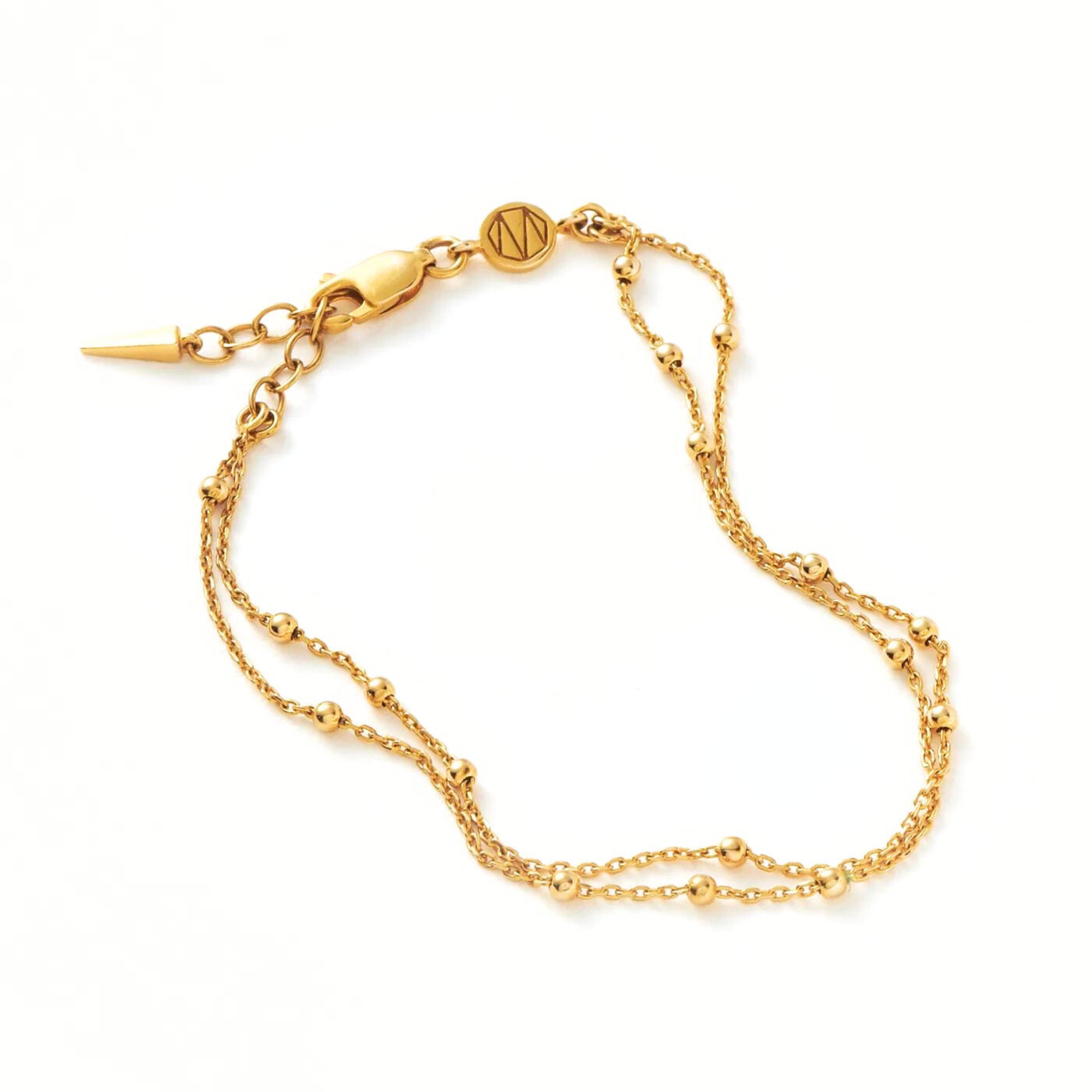 Upgrade your layers with a delicate addition. Featuring two chains with bobble detailing, this best selling bracelet easily fastens with a clasp. Two bracelets in one, pair with a cuff for the ultimate arm stack