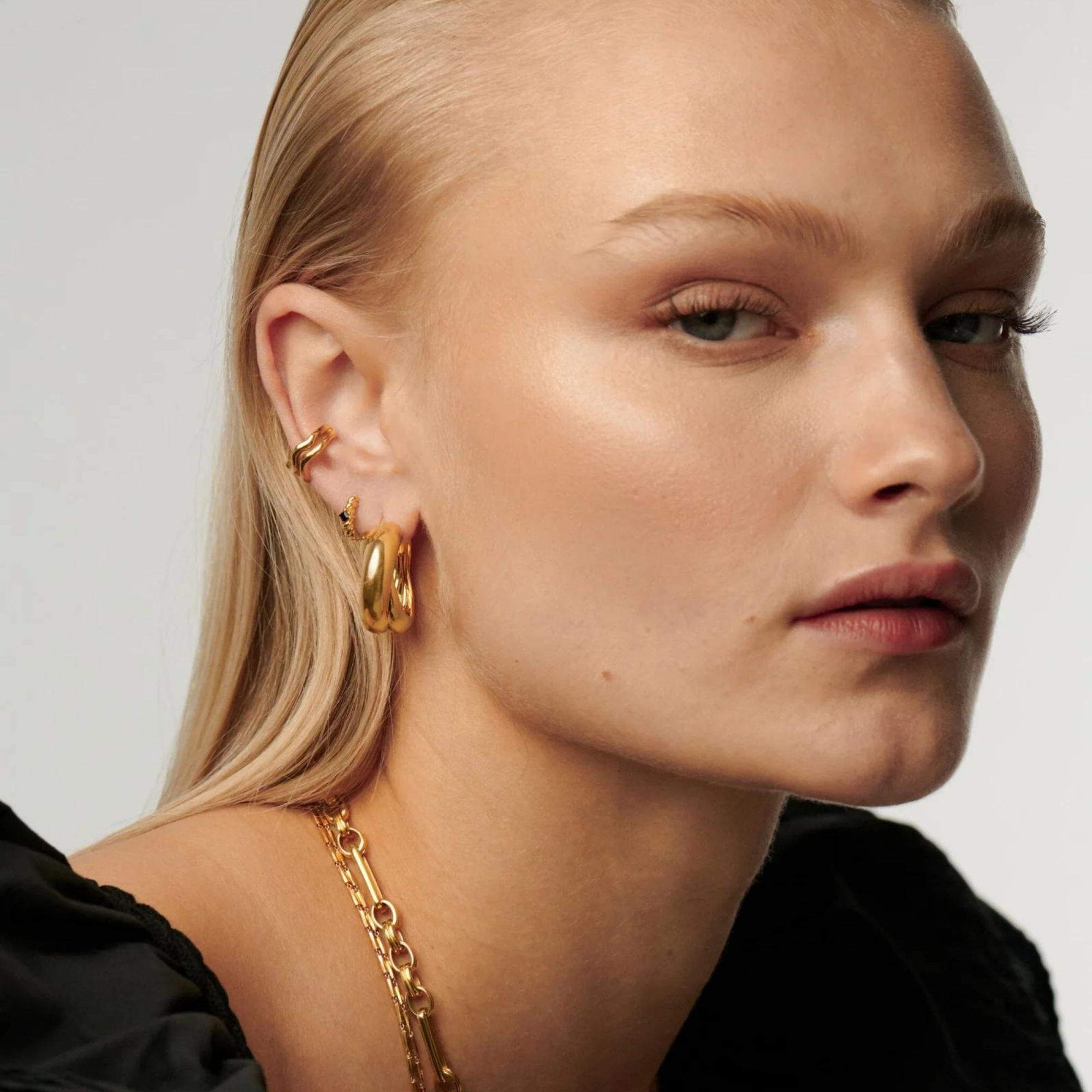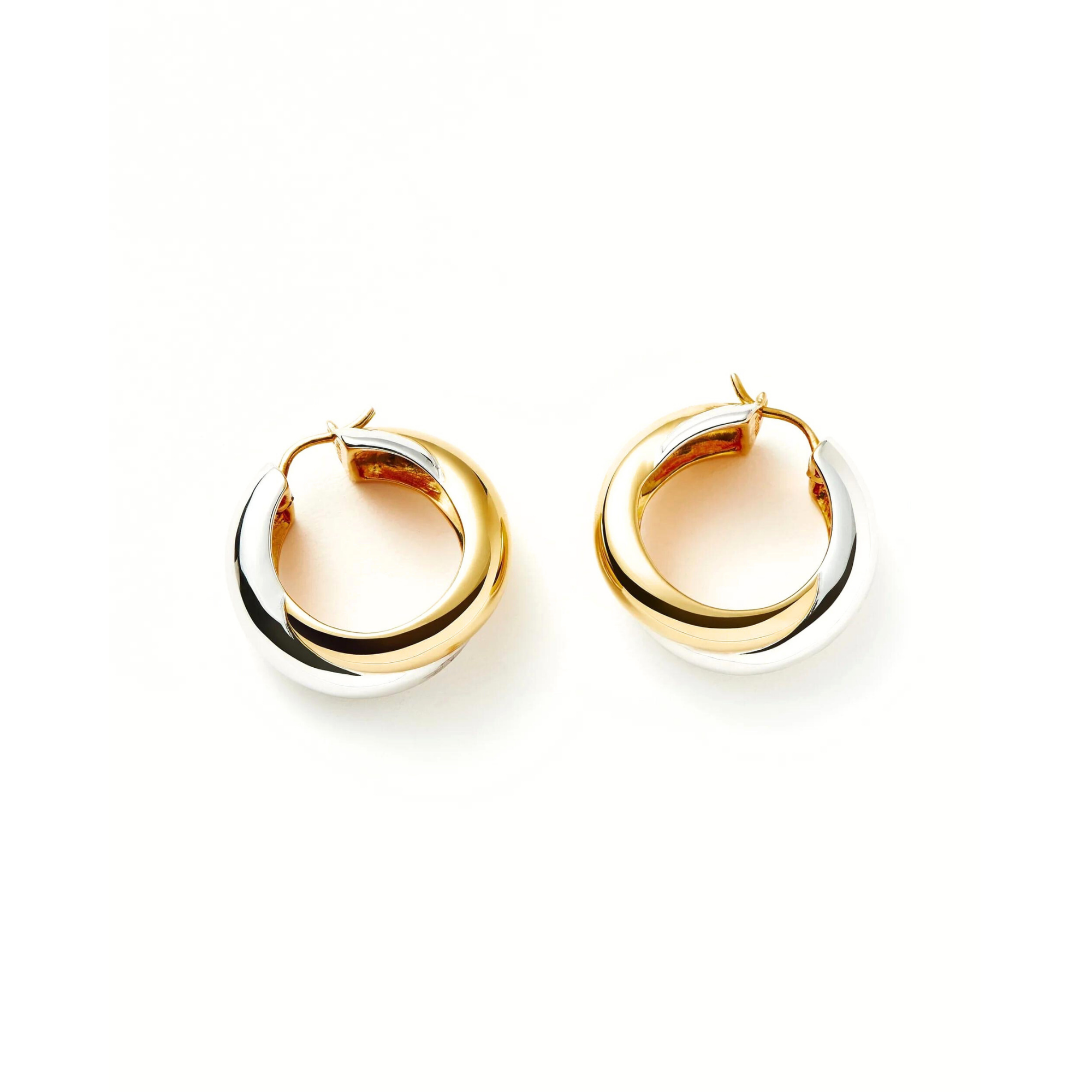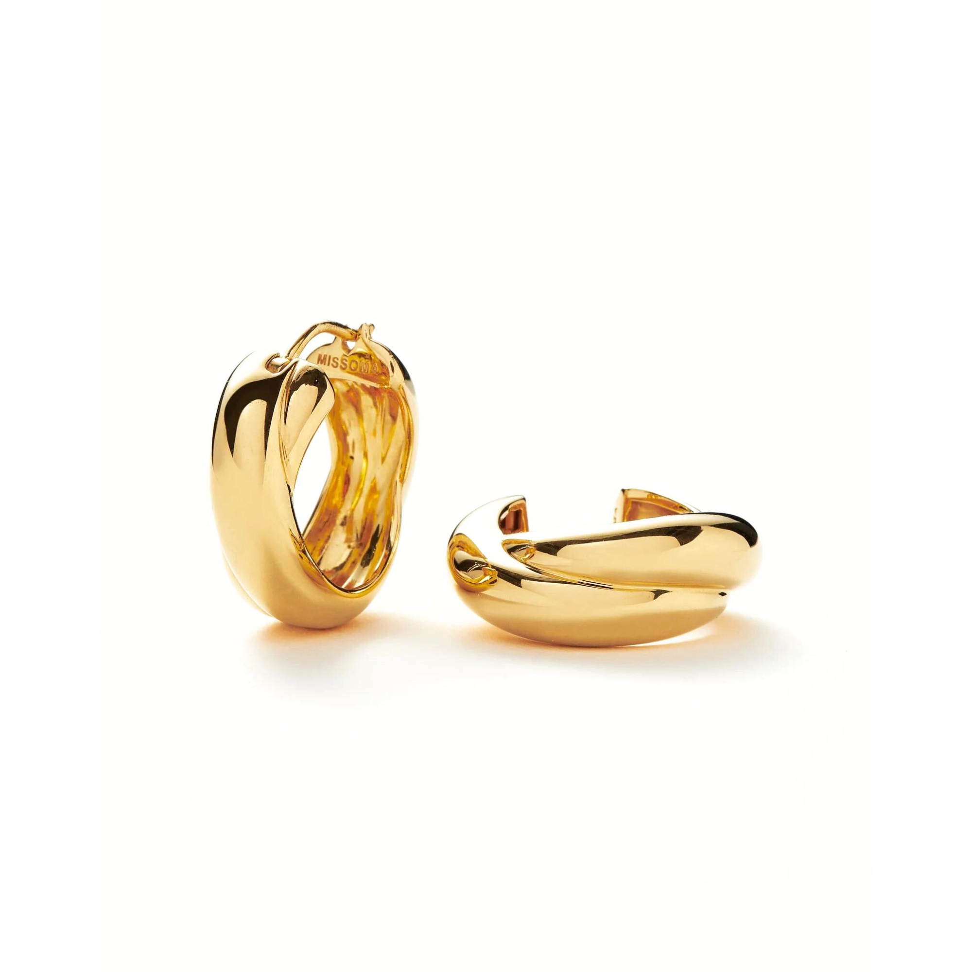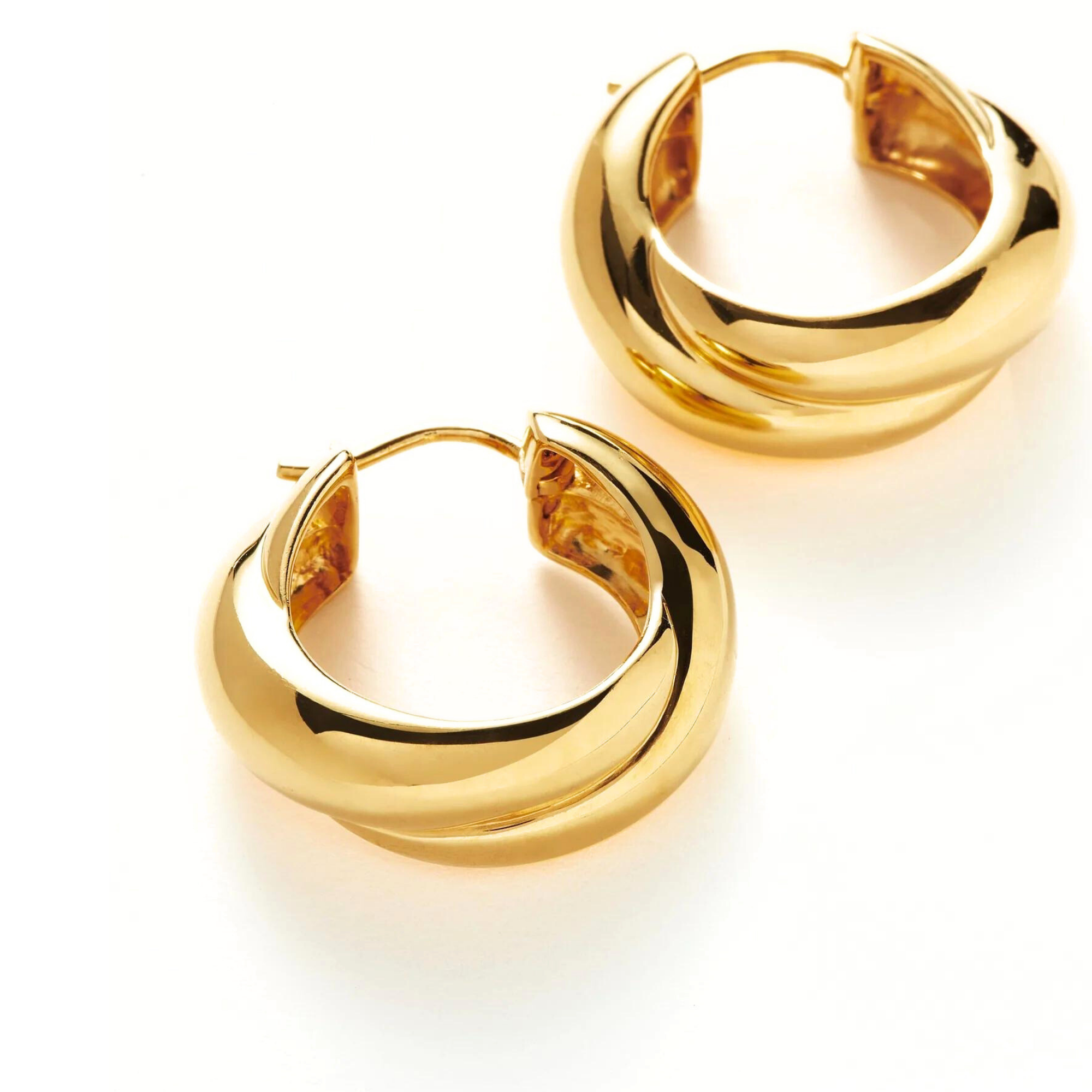 A best selling Lucy Williams x Missoma design. Inspired by 80s maximalism, these chunky hinged double hoops feature a unique crossover design. Just as standout on their own as they are part of a curated ear stack.