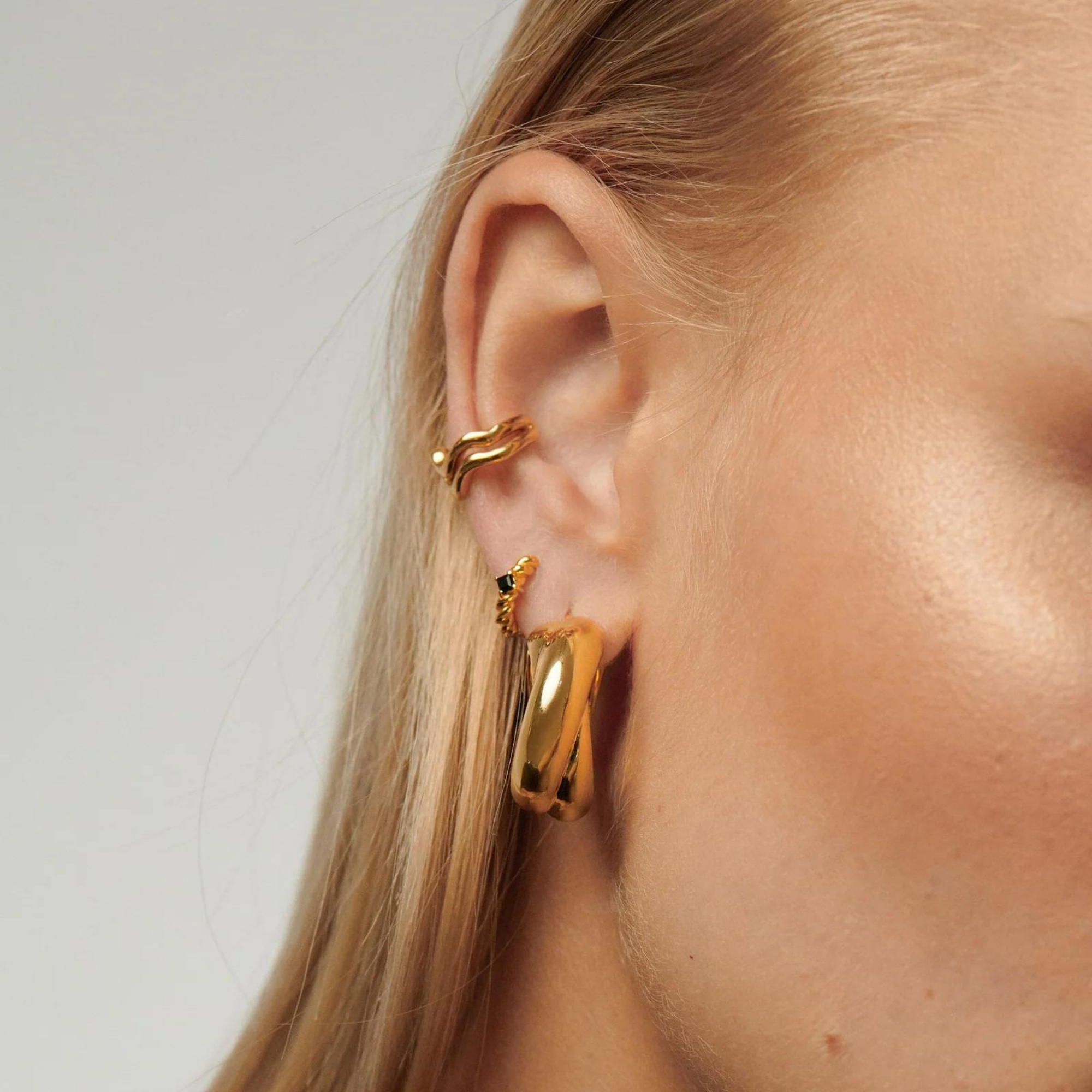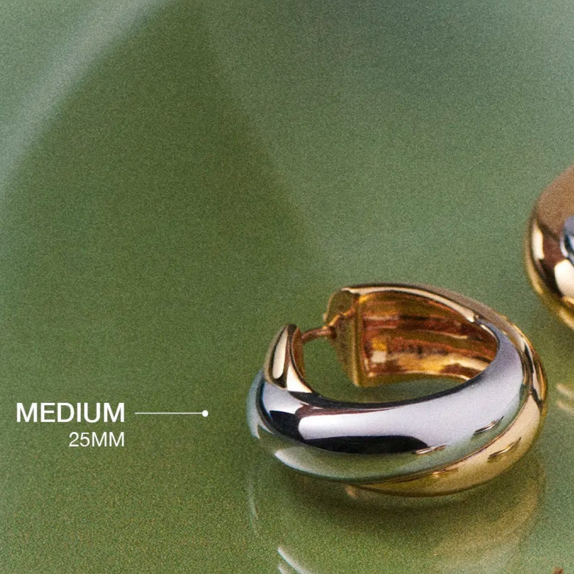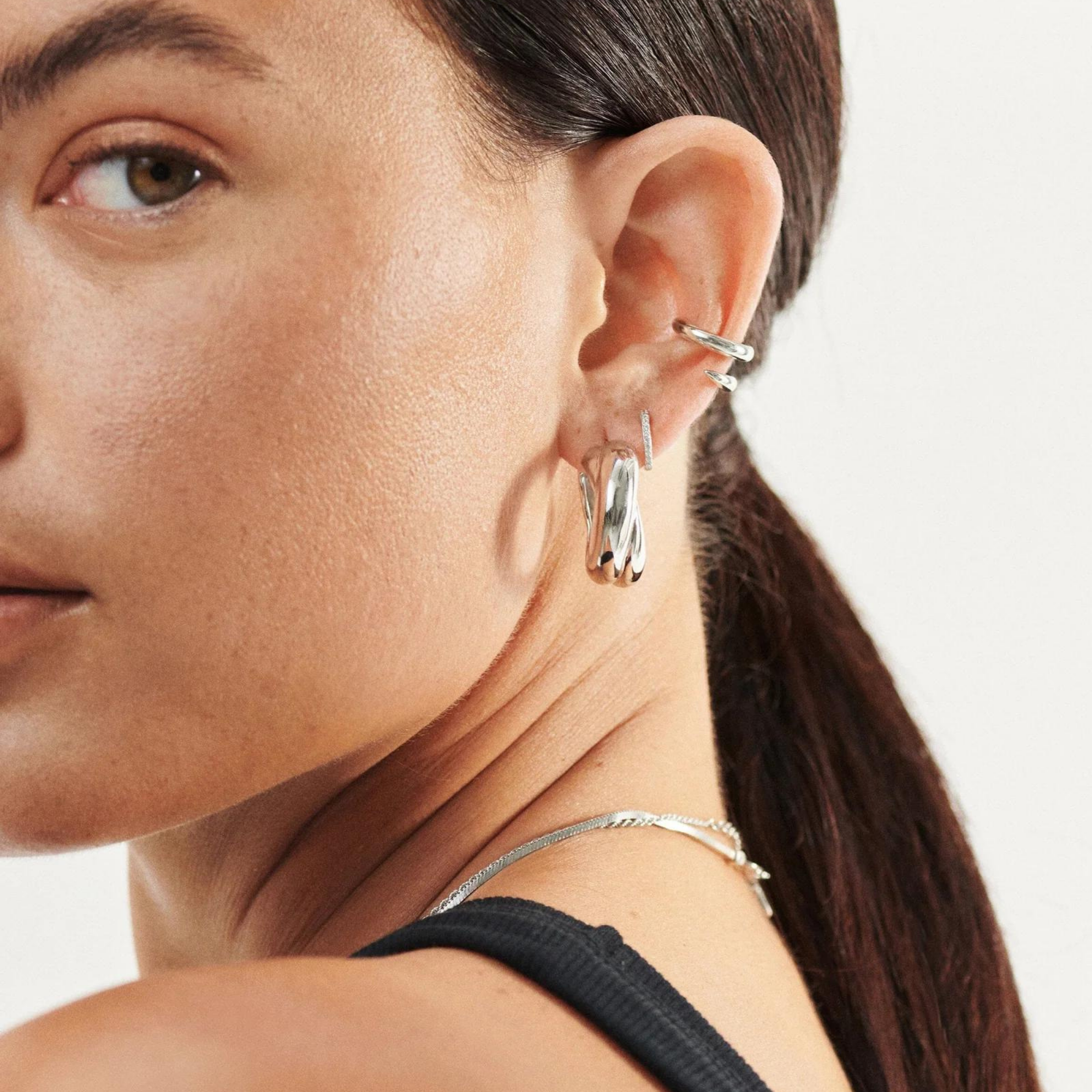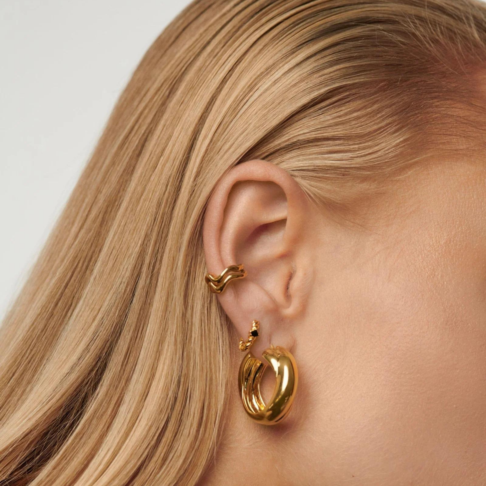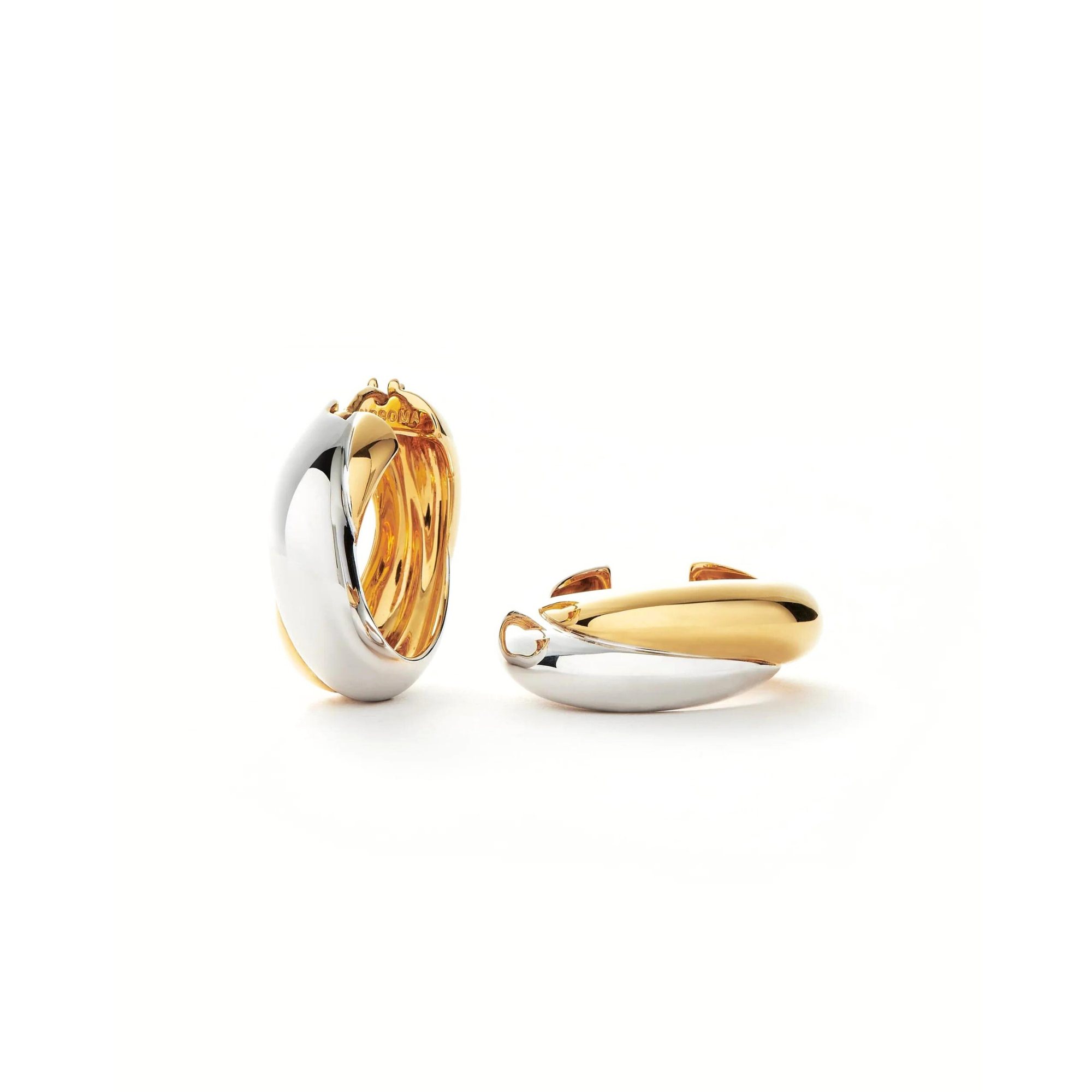 A best selling Lucy Williams x Missoma design. Inspired by 80s maximalism, these chunky hinged double hoops feature a unique crossover design. Just as standout on their own as they are part of a curated ear stack.