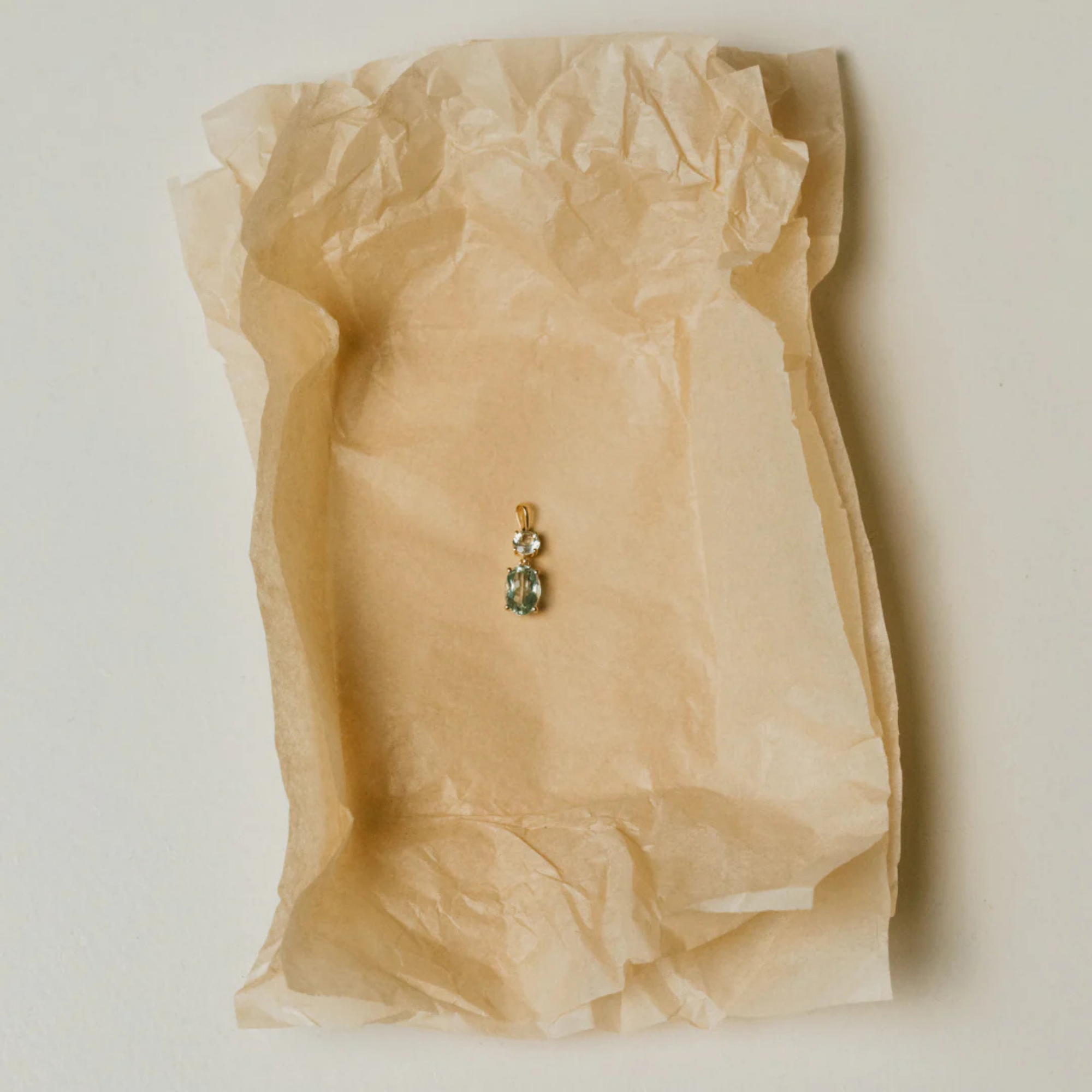 The Lustre pendant combines Victorian and Edwardian elements in a refined AVJ design. The double amethyst stone – a round one on top and a larger oval stone below – symbolizes balance and elegance, cherished in the Victorian era and enhanced by the symmetrical Edwardian style.
