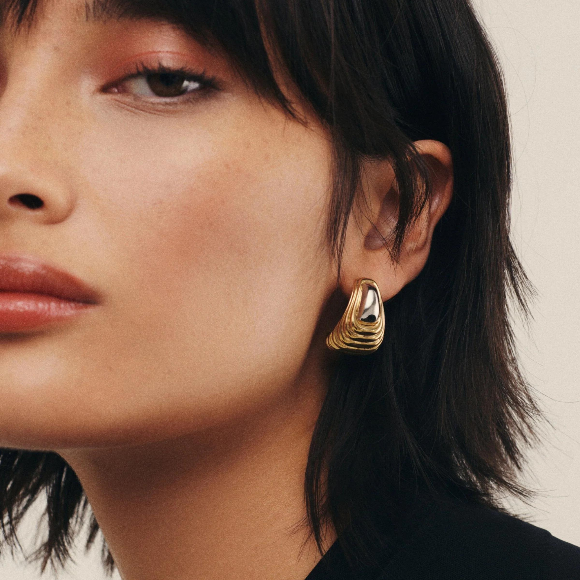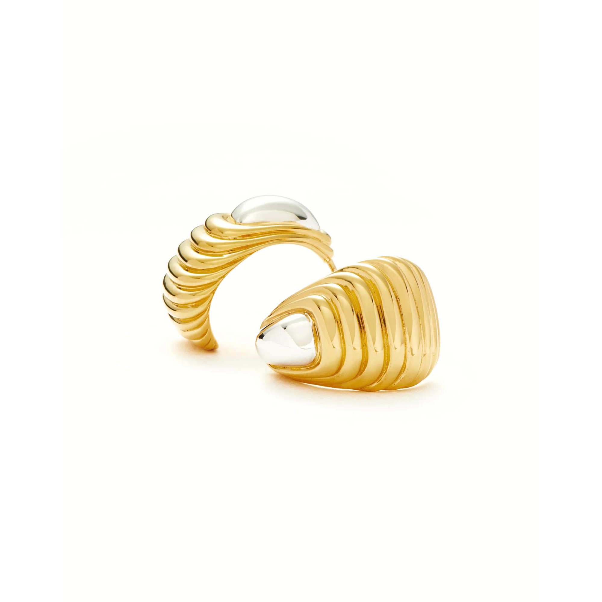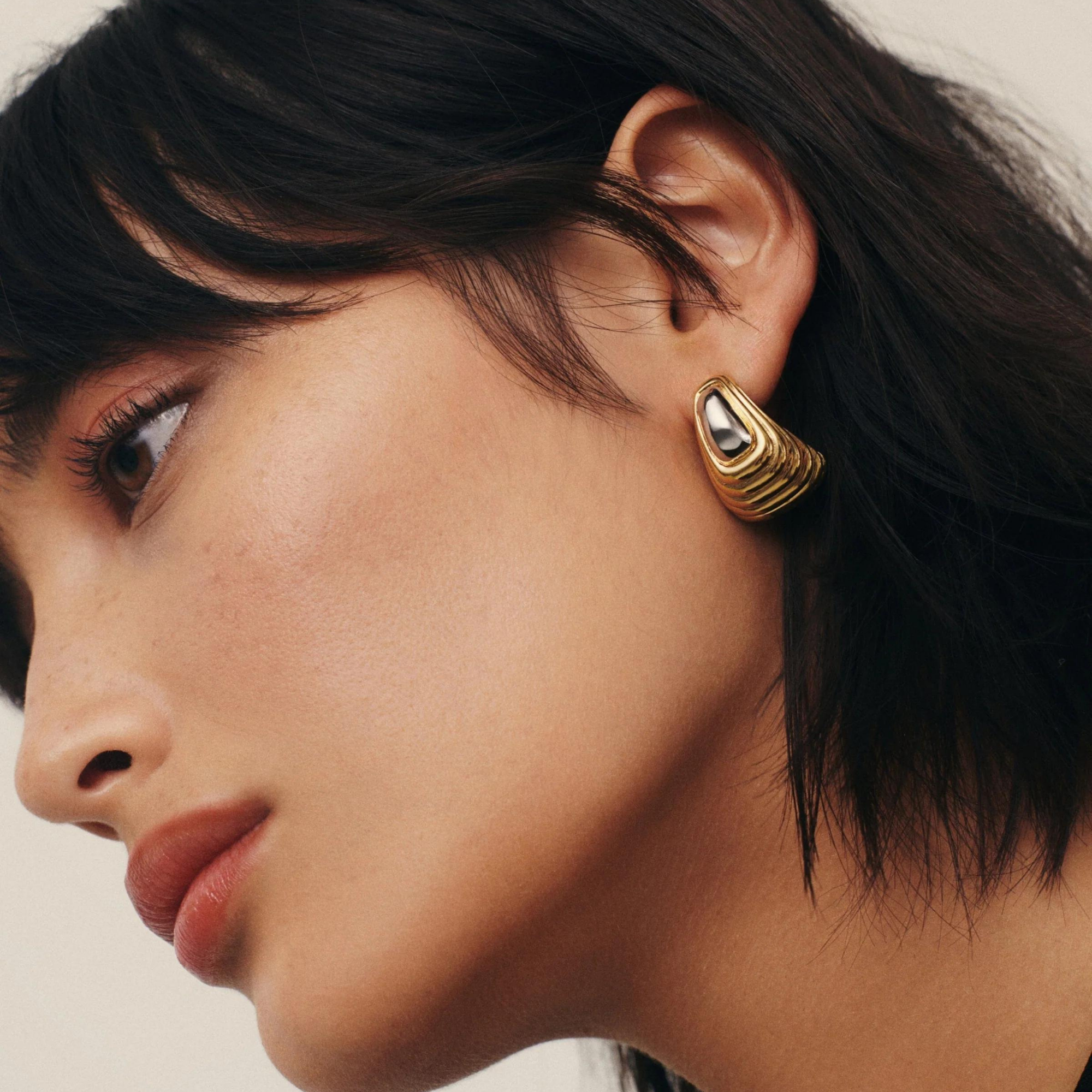 Go overstated with these large mixed metal studs, featuring signature ridge detailing and a silver centre. Let them take centre stage or style with mini hoops and studs for an instant ear stack.