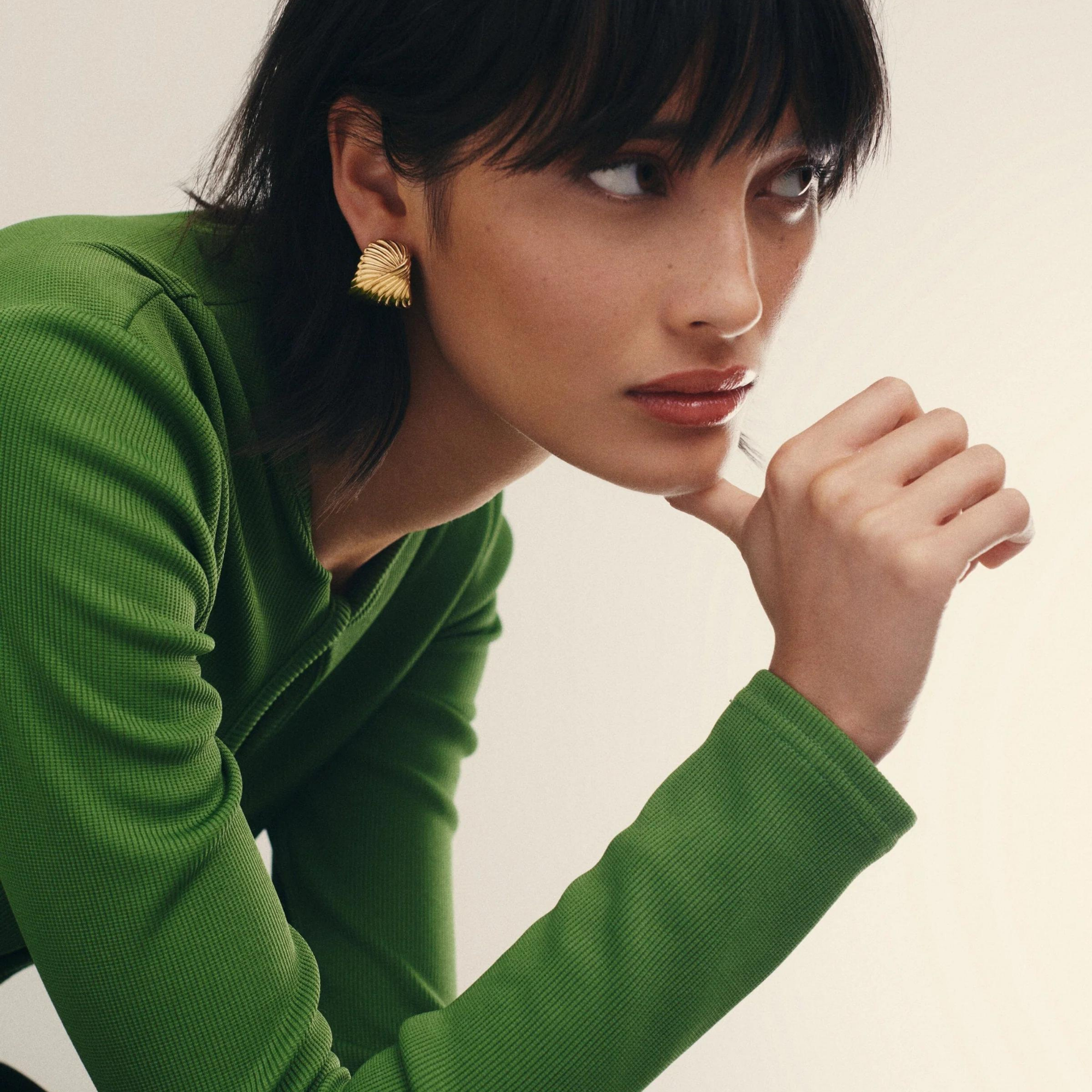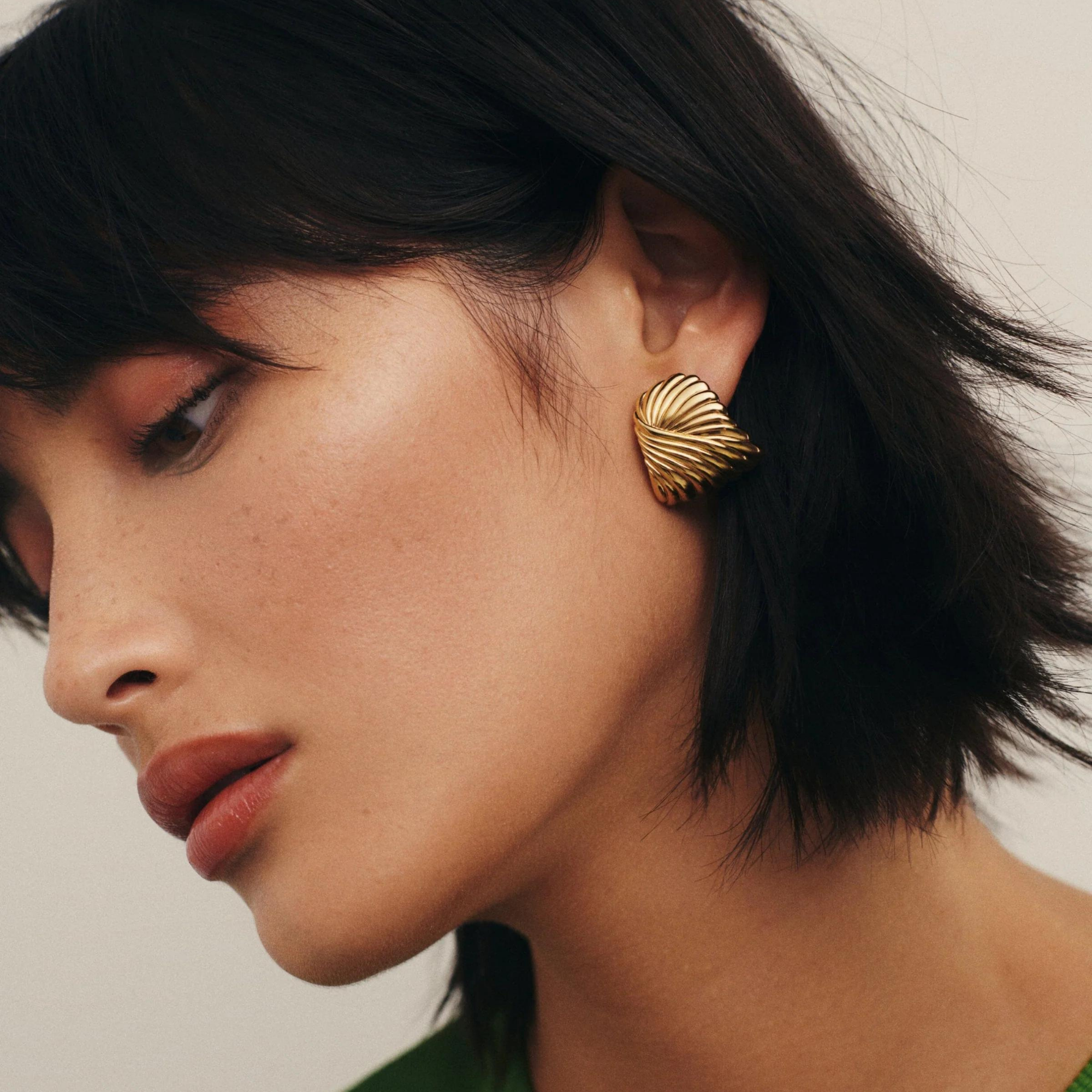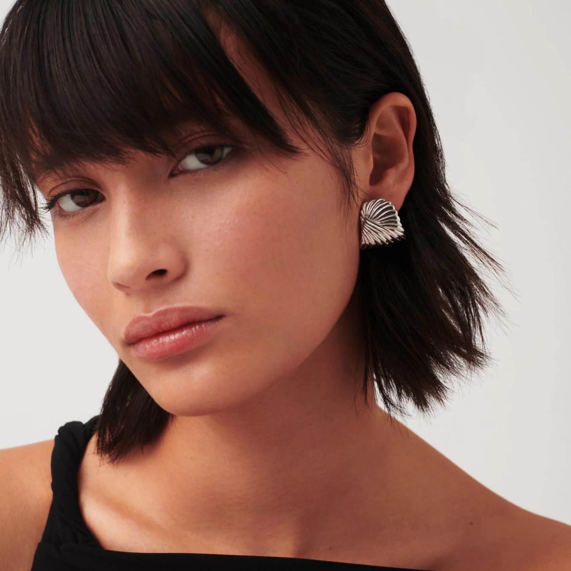 Go overstated with these large standout silver studs, featuring signature ridge detailing for a ripple effect. Let them take centre stage or style with studs for an instant ear stack.