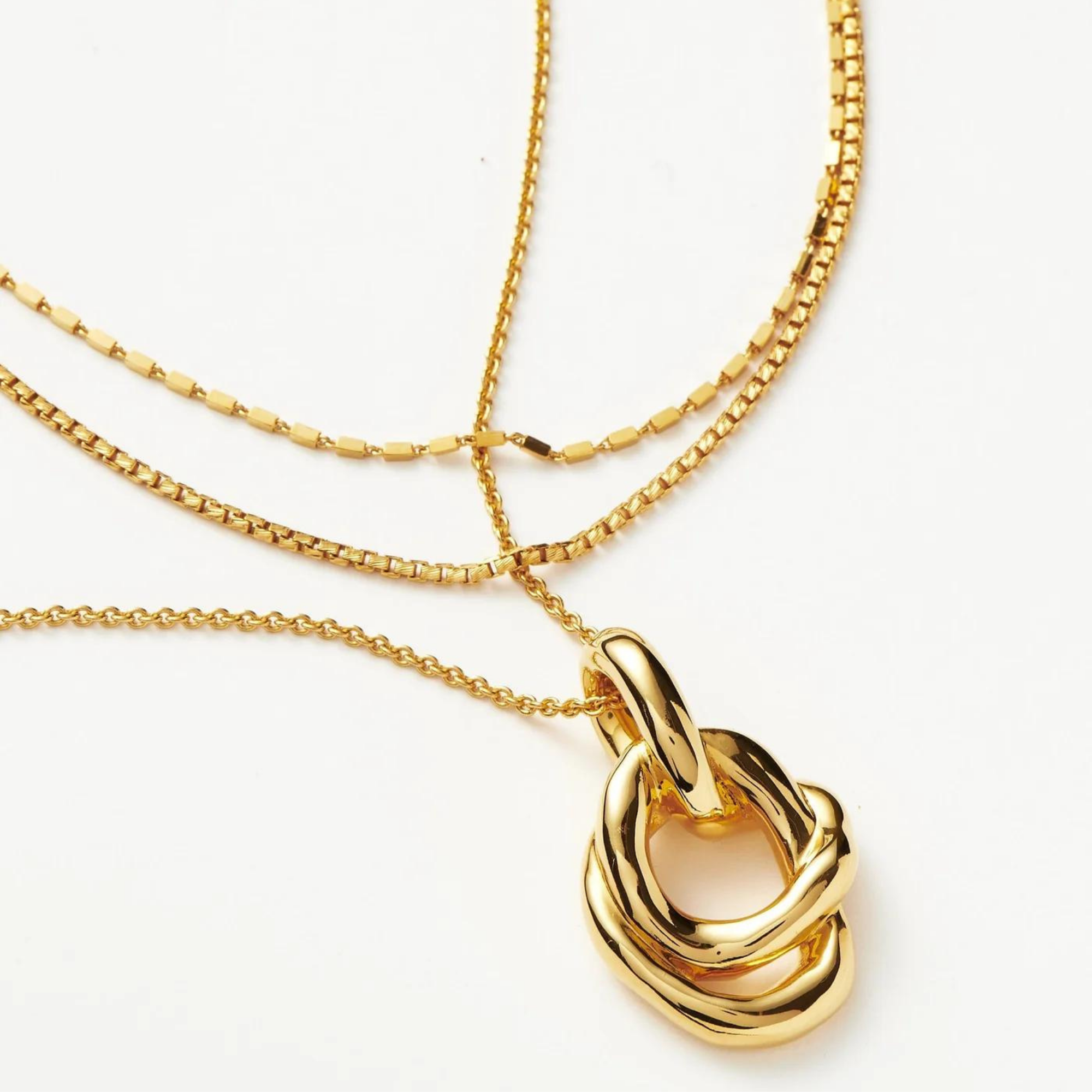 Twisted Double Pendant Necklace is 18ct Recycled Gold Plated on Brass