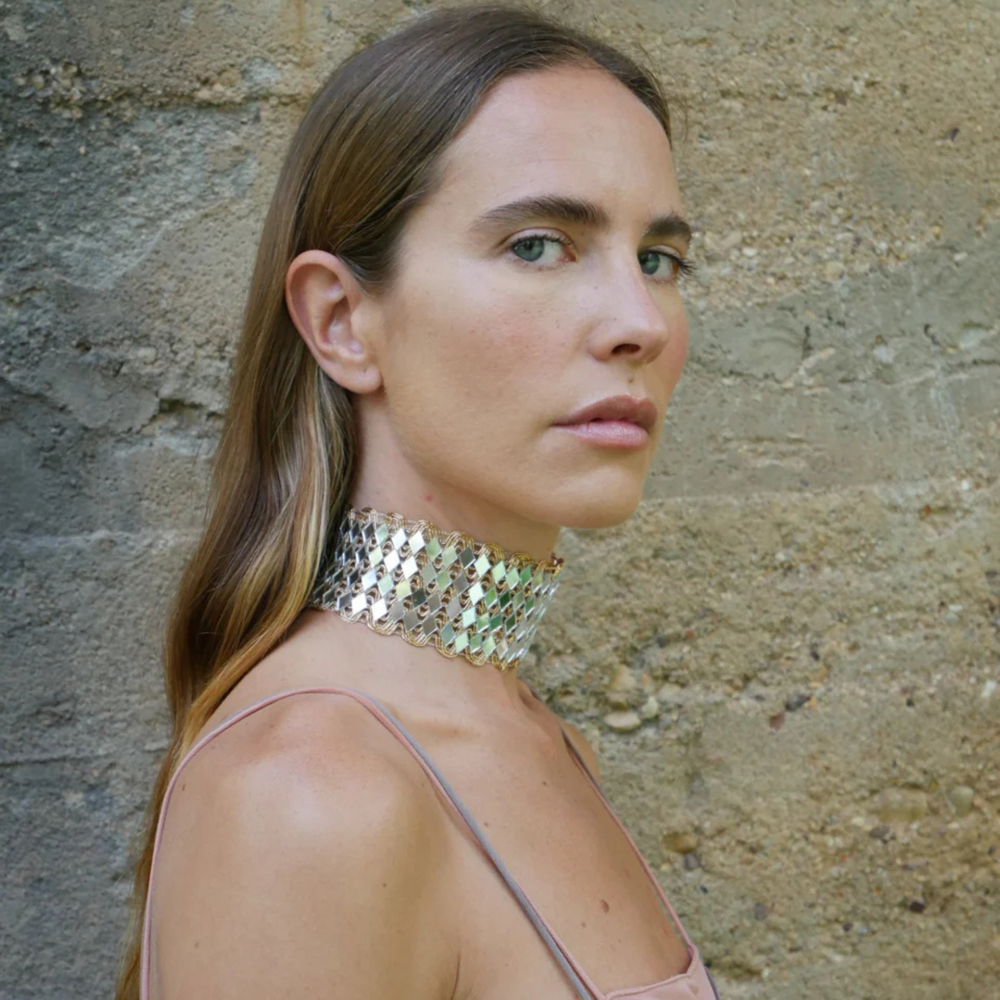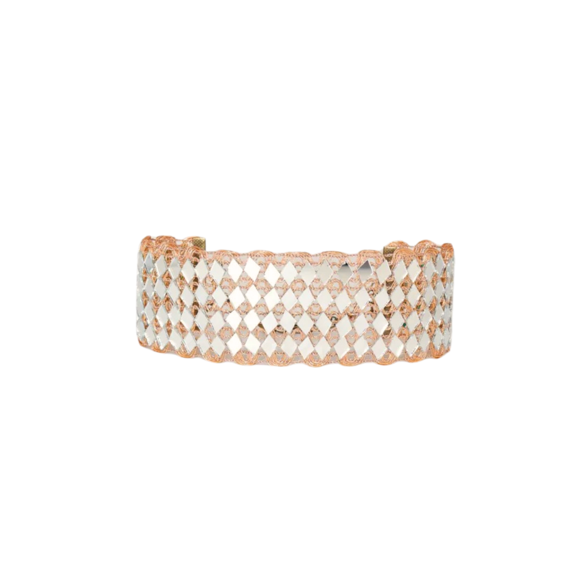 A handcrafted piece that stands out not only for its unique and original design, but also for its light weight and delicacy. This unique piece of jewelry, made with mirrors, catches the light and illuminates every step, creating a mesmerizing play of reflections. Dazzle on any occasion!