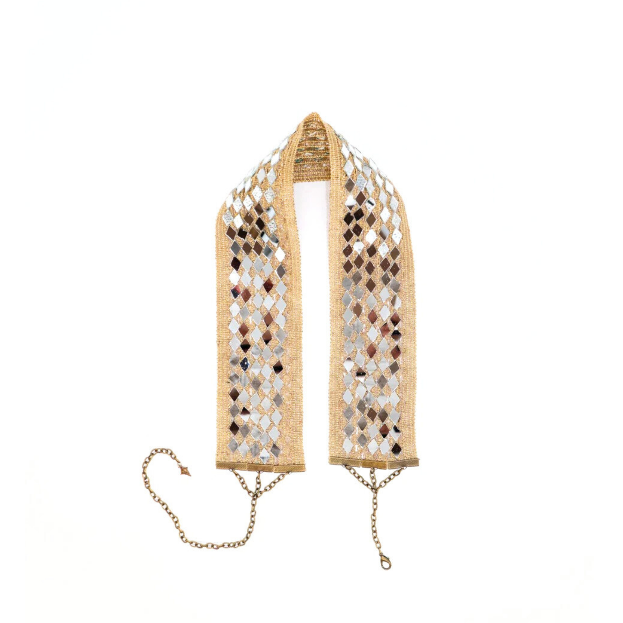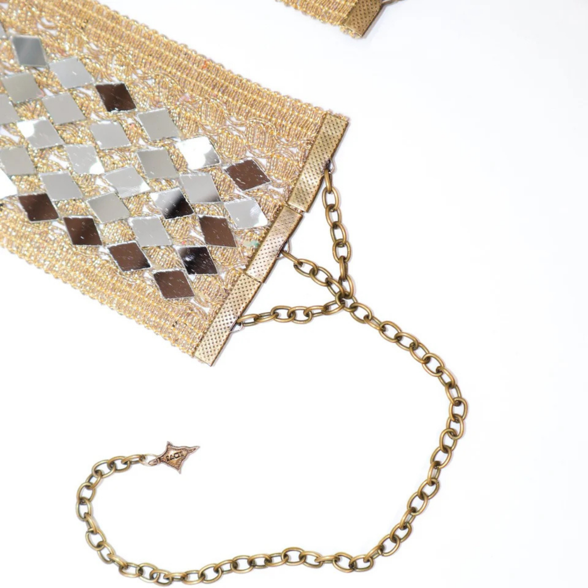A handcrafted piece that stands out not only for its unique and original design, but also for its light weight and delicacy. This unique piece of jewelry, made with mirrors, catches the light and illuminates every step, creating a mesmerizing play of reflections. Dazzle on any occasion!