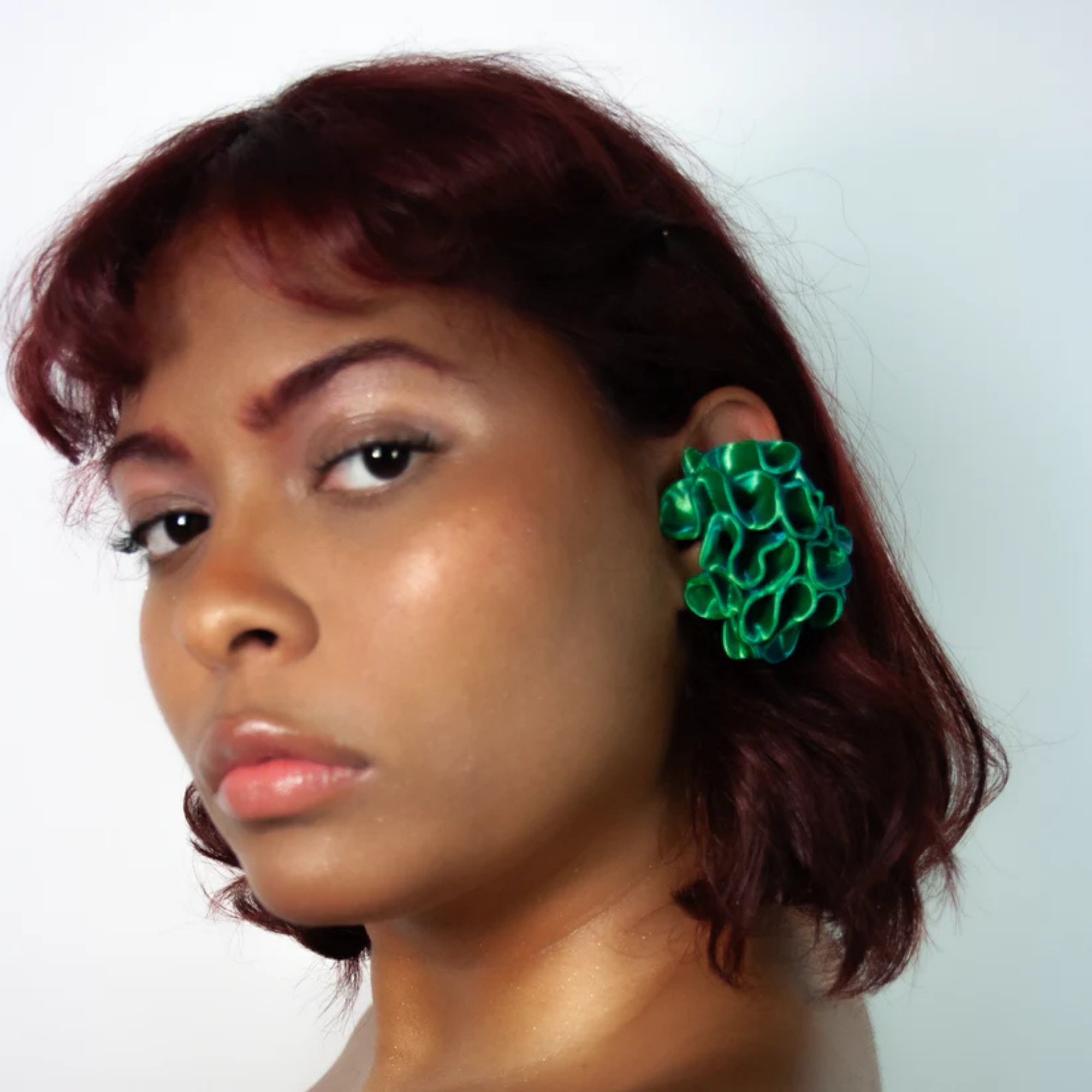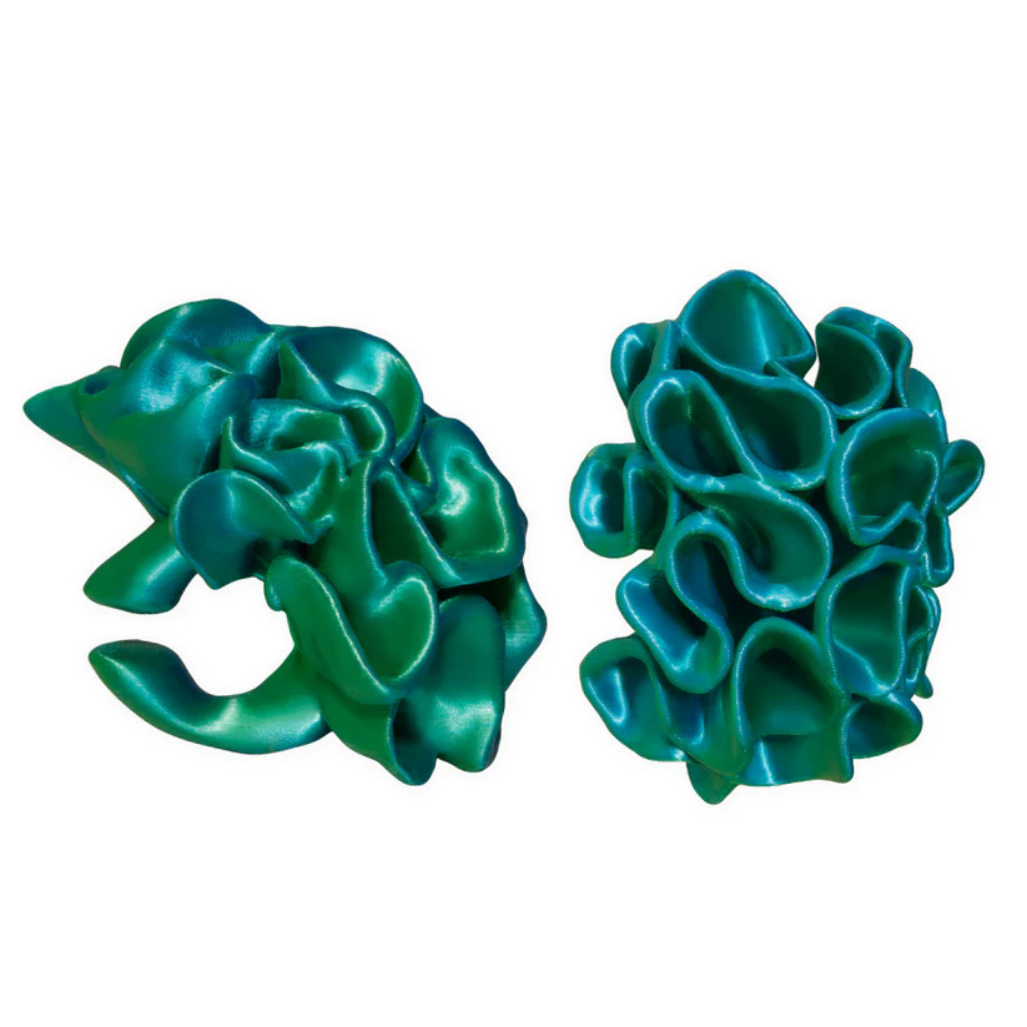 Elevate your everyday look with our Marina 3D Printed Earcuffs. Crafted with cutting-edge 3D printing technology, these earrings feature a captivating two-toned blue and green hue that shimmers and shifts with every movement. With smooth waves and intricate curves, this design captures the fluid motion of the ocean, seamlessly blending natural elegance with artistic flair to create a captivating statement piece.