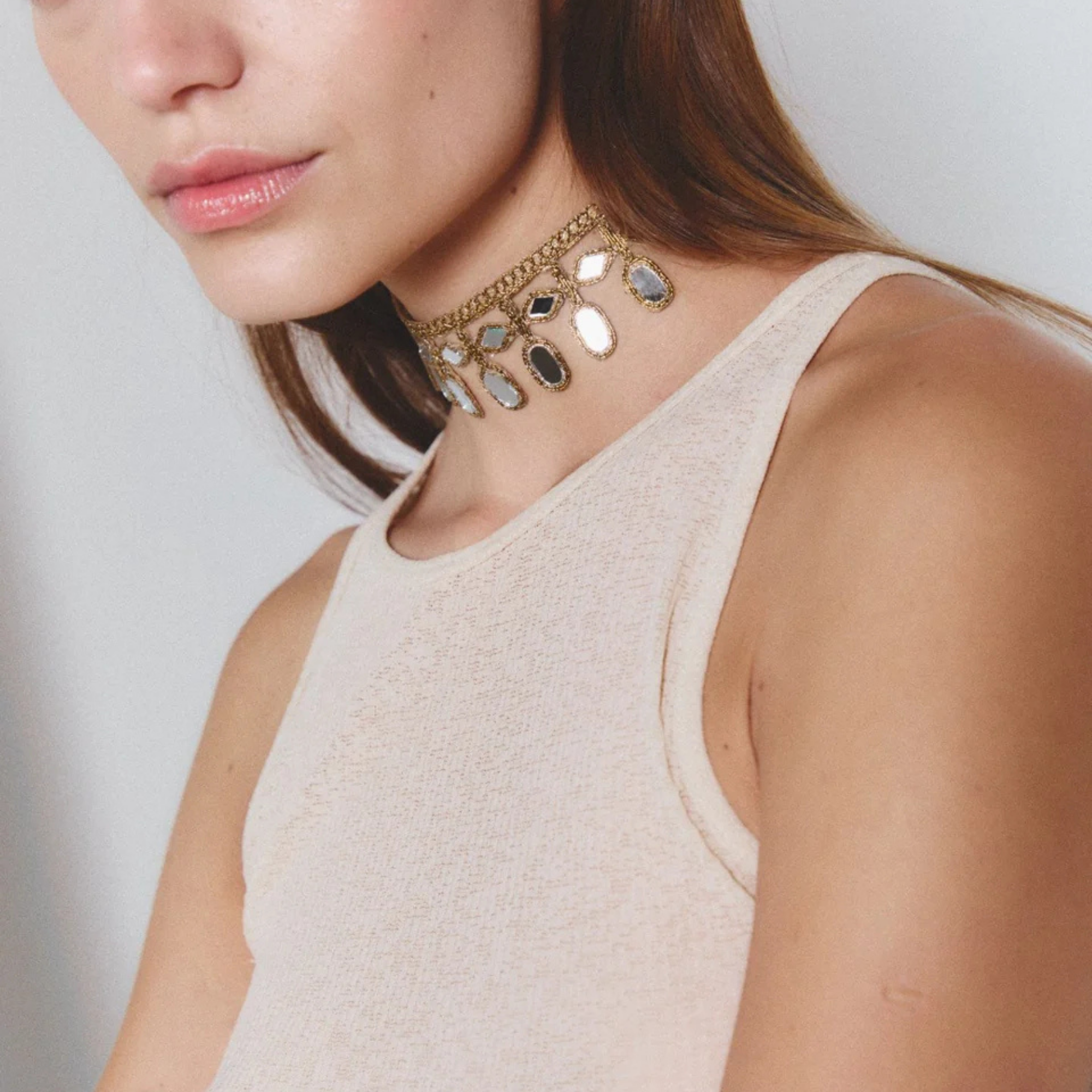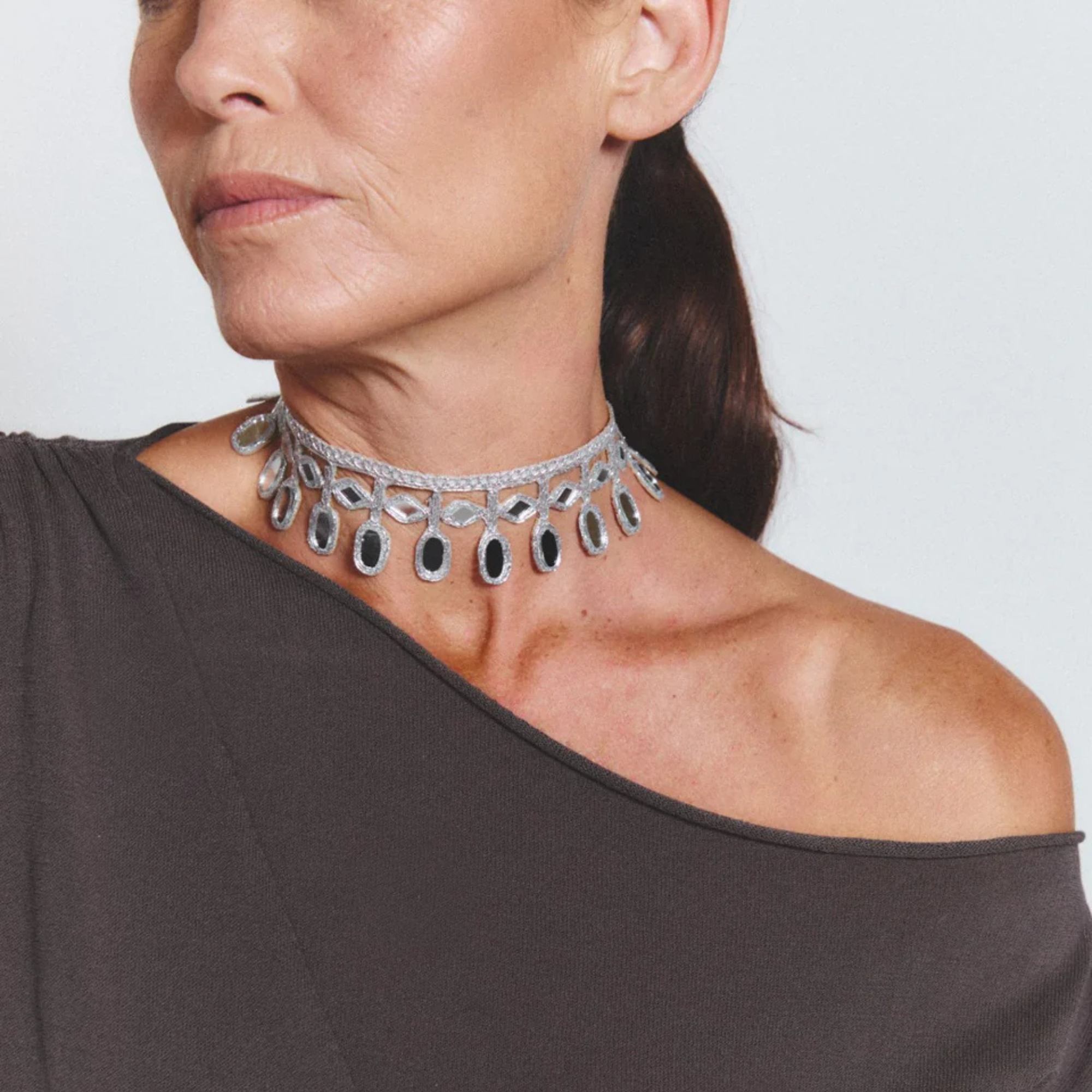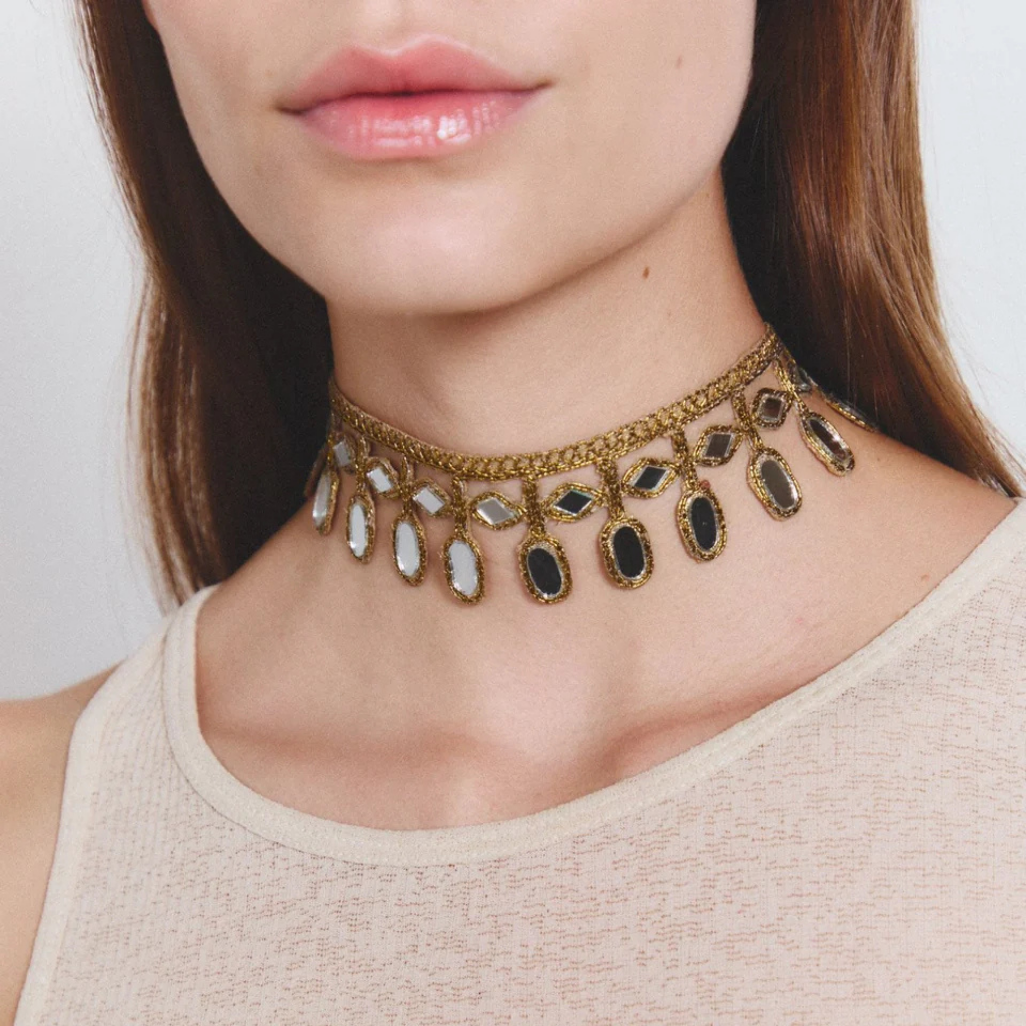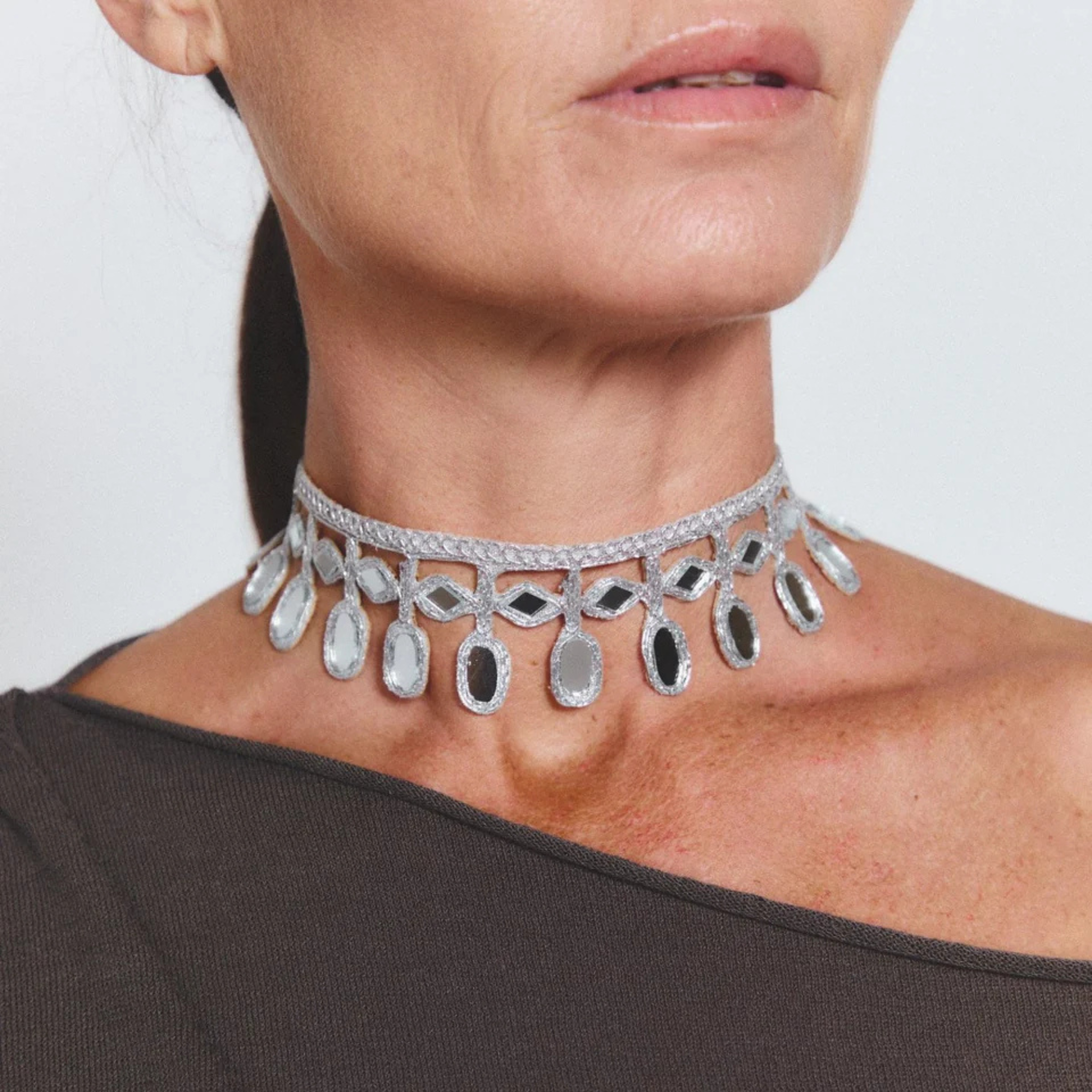A handcrafted piece that stands out not only for its unique and original design, but also for its light weight and delicacy. This unique piece of jewelry, made with mirrors, catches the light and illuminates every step, creating a mesmerizing play of reflections. Dazzle on any occasion!