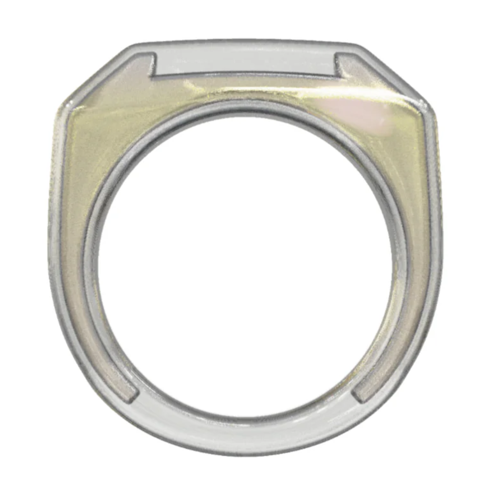 A LIQUID CORE SUSPENDED WITHIN A SOLID QUARTZ BODY — THE FIRST TIME LIQUID HAS BEEN SEALED INSIDE MINERAL AT THIS SCALE. EACH RING IS PRECISION-MILLED FROM A SINGLE BLOCK OF ENGINEERED CRYSTAL USING CUSTOM DIAMOND TOOLS, THEN POLISHED TO A PURE, STONE-LIKE GLEAM.THE LIQUID MOVES WITH SLOW, CINEMATIC MOTION — A WARM, LIGHT-REACTIVE GLOW HELD IN STASIS. IT SHIFTS AND GLIDES THROUGH THE TRANSLUCENT FORM, CATCHING LIGHT THROUGH THE WIDE HOLOGRAPHIC NOTCH CUT INTO ITS CROWN.THIS IS THE MOST TECHNICALLY ADVANCED PIECE IN THE COLLECTION. AN OBJECT THAT COULD ONLY EXIST NOW — A MONUMENT TO MEMORY, SEALED IN MINERAL, DESIGNED TO OUTLAST.