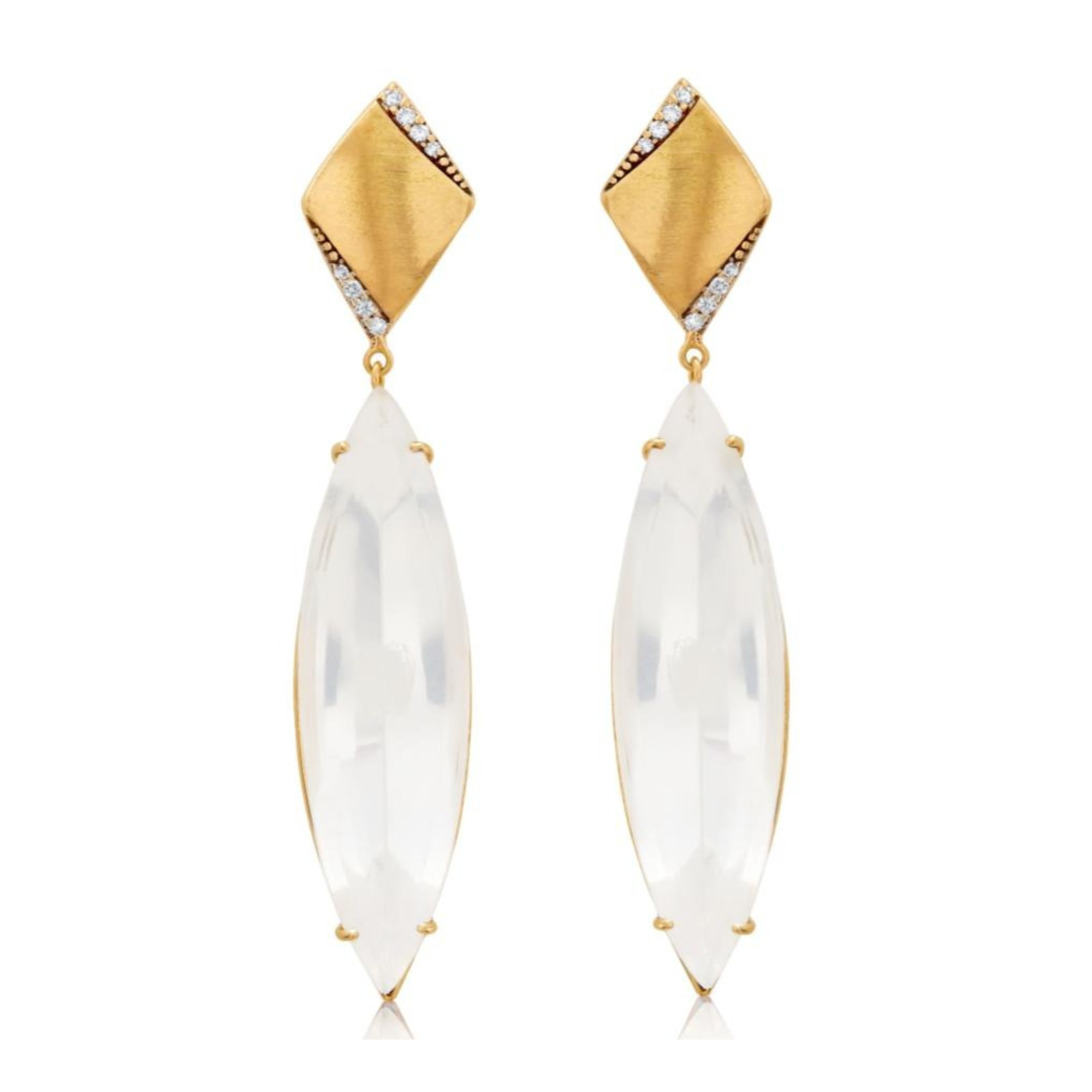 Aretes Geometria Sagrada Cuarzo - Aretes de oro amarillo 18k con cuartzo y diamantes
