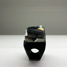 This clear quartz geometric ring is a bold statement piece designed for modern minimalists, thinkers, and quiet forces of nature. Featuring a transparent, architectural quartz crystal set on a hand-sculpted black ceramic band, Silent Structure is meant to transform stillness into strength and subtlety into power.