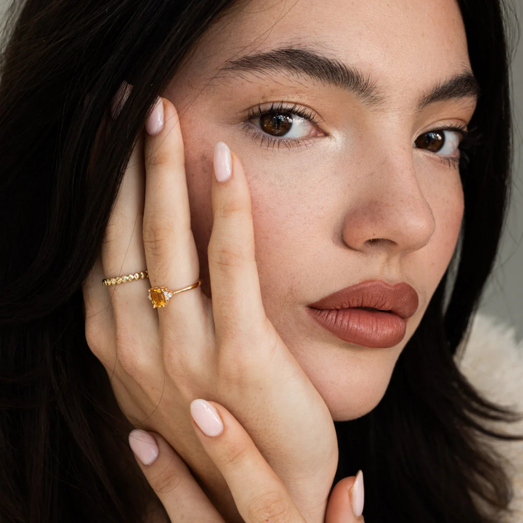 A tribute to the history of Maya Angelou, this 14 karat gold ring shines with an emerald-cut citrine and brilliant-cut diamonds. The inspiration behind this ring comes from the world-famous poet, writer, and civil rights activist.