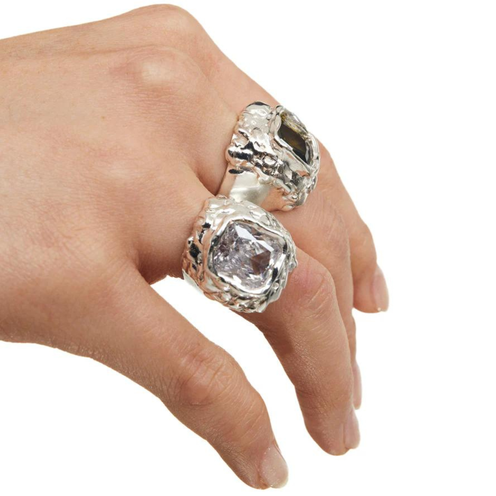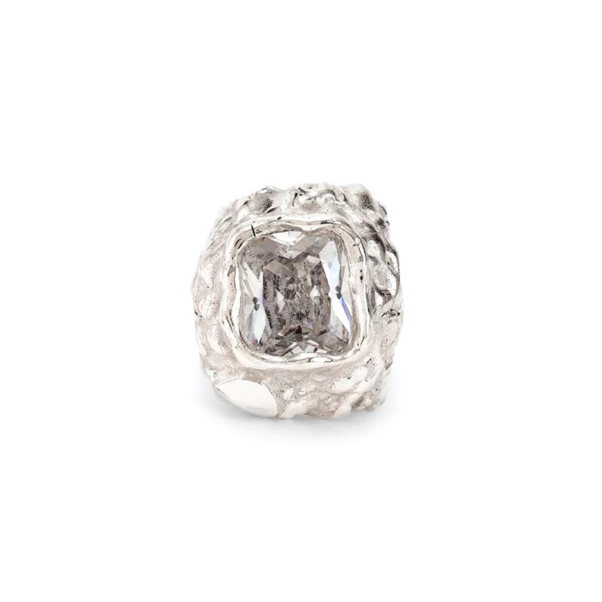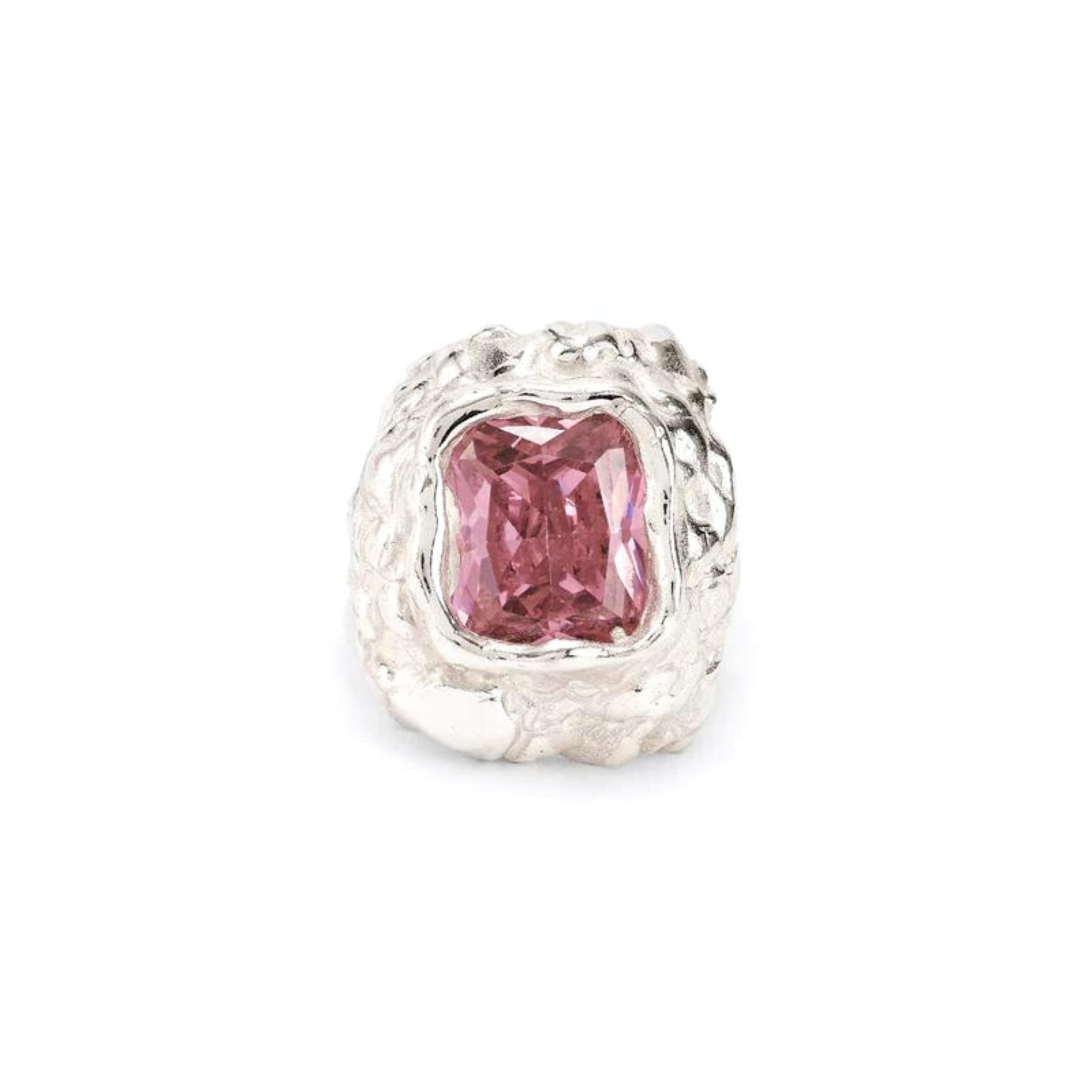 Silver Signet ring with color zircon, organic shape with voluminous spots around the zircon.